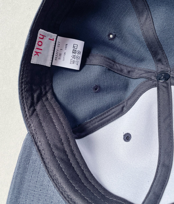 holkから、BASEBALL CAPが入荷しました。あらかじめバイザーに角度を持たせた馴染みの良い仕立てのベースボールキャップ。ハトメを6か所に配置したクラシックデザイン。リングベルト式のアジャスト付き。