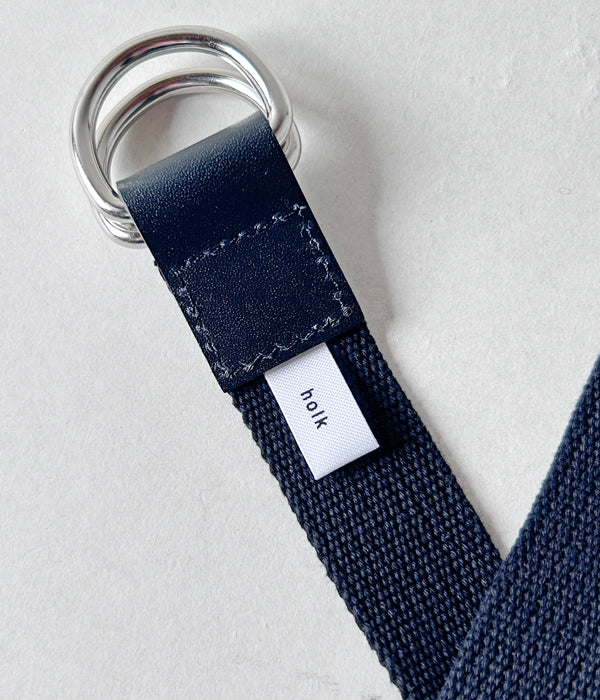 holkから、BELTが入荷しました。D型リングを2つ使用したシンプルなリング締めベルトです。カジュアルな素材を用いましたが、ポイントに同色のレザーパーツを使用しシックな雰囲気にまとめました。2サイズ展開。