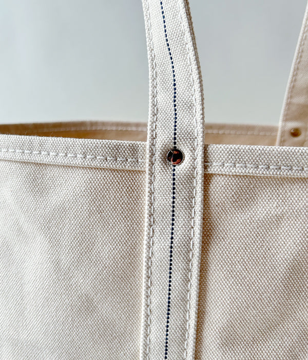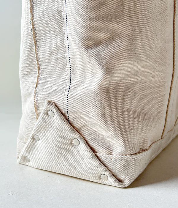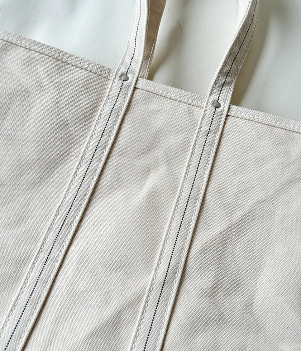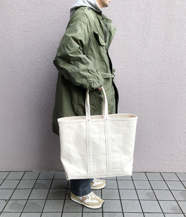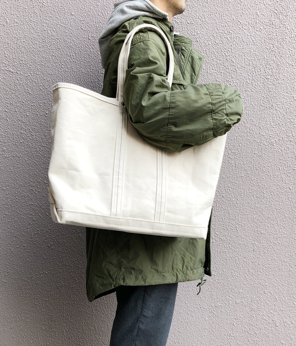 holkから、COAL BAG x OOE YOUFUKUTENが入荷しました。holkと大江洋服店による共同で製作されたビッグサイズのキャンバストートバッグ。肩掛けから手持ちまでカバーする絶妙なハンドルサイズ。厚手の素材でしっかりと自立する仕様です。要所に施したブラックステッチと、デザイン性も兼ねた補強リベットがアクセントに。