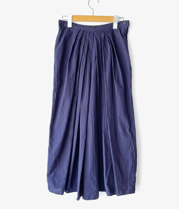 holkから、LONG SKIRTが入荷しました。プリーツを多用した裾のボリュームが美しいロングスカート。肌離れの良い涼しげな質感のコットンを使用した軽快な着用感が特徴。、ウェストにドローコードを仕込み少し大きめでも絞って調整できます。サイドファスナー開き、サイドポケット1か所付き。