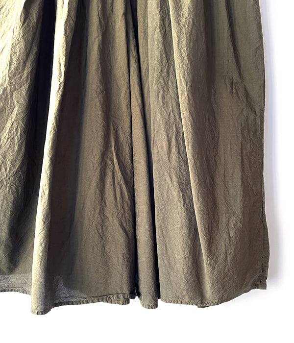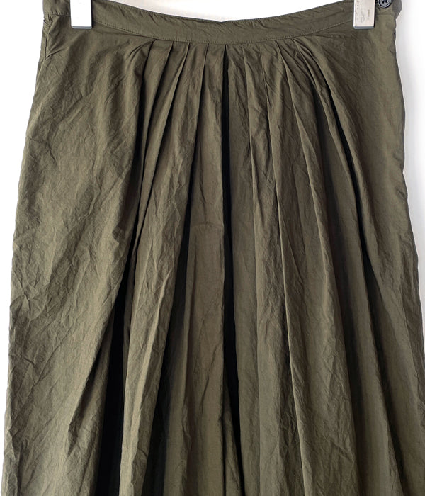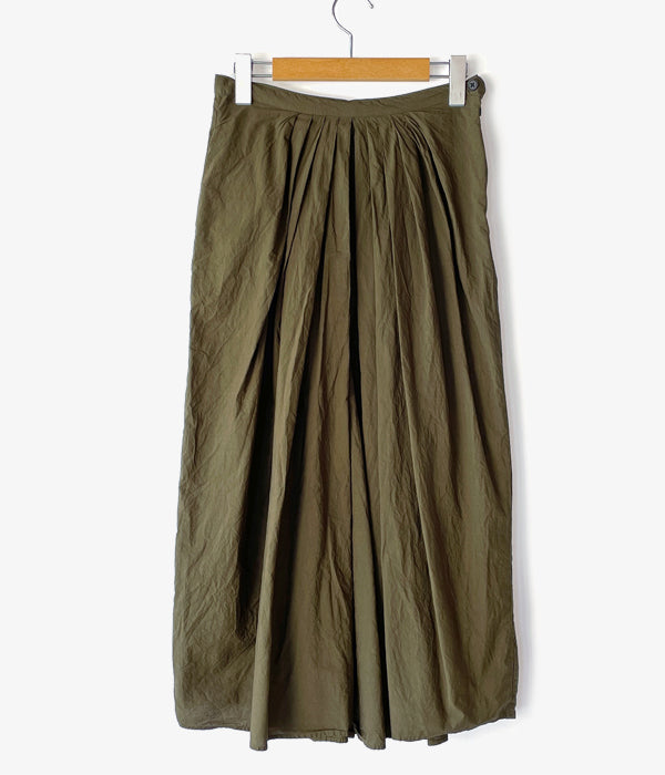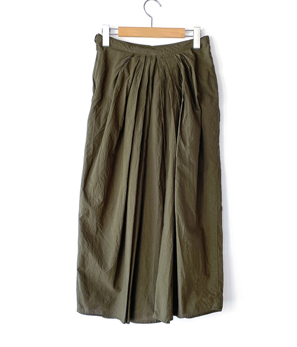 holkから、LONG SKIRTが入荷しました。プリーツを多用した裾のボリュームが美しいロングスカート。肌離れの良い涼しげな質感のコットンを使用した軽快な着用感が特徴。、ウェストにドローコードを仕込み少し大きめでも絞って調整できます。サイドファスナー開き、サイドポケット1か所付き。