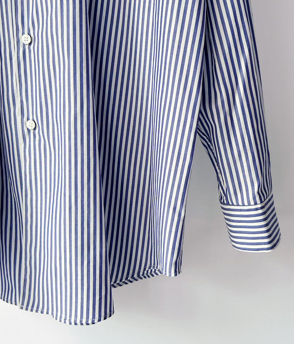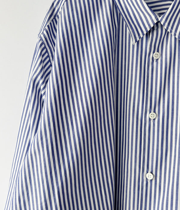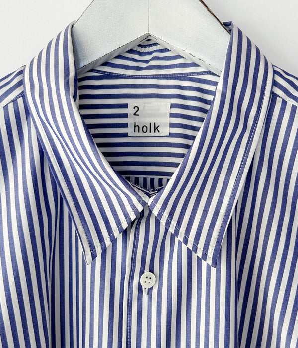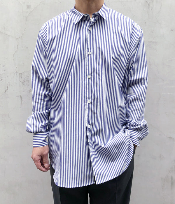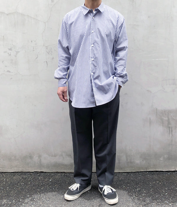 holkから、REGULAR SHIRTが入荷しました。定番のレギュラーシャツを春らしいストライプ柄で仕立てました。サイドからのカッティングが非常に綺麗なパターンで構成され、身幅を広く取り、裾に進むにつれボリュームがをもたせたドレープ感のある美しいシルエット。