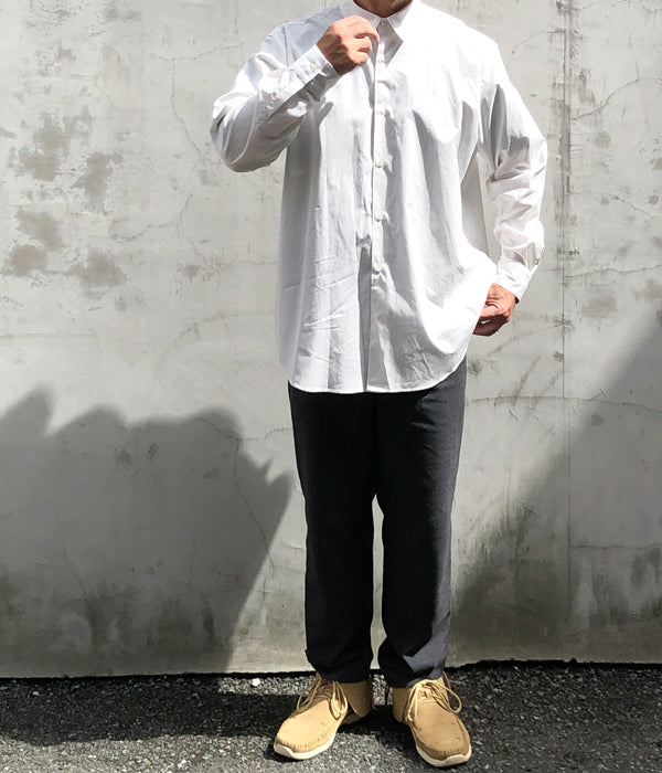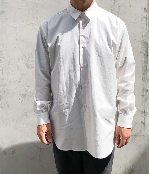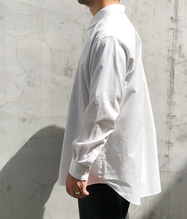 holkから、REGULAR SHIRTが入荷しました。程よい厚みのコットン素材を使用した定番の仕立てのレギュラーシャツ。身幅を広く取り、裾に進むにつれボリュームを感じる美しいシルエット。