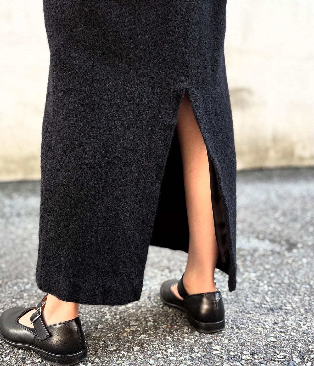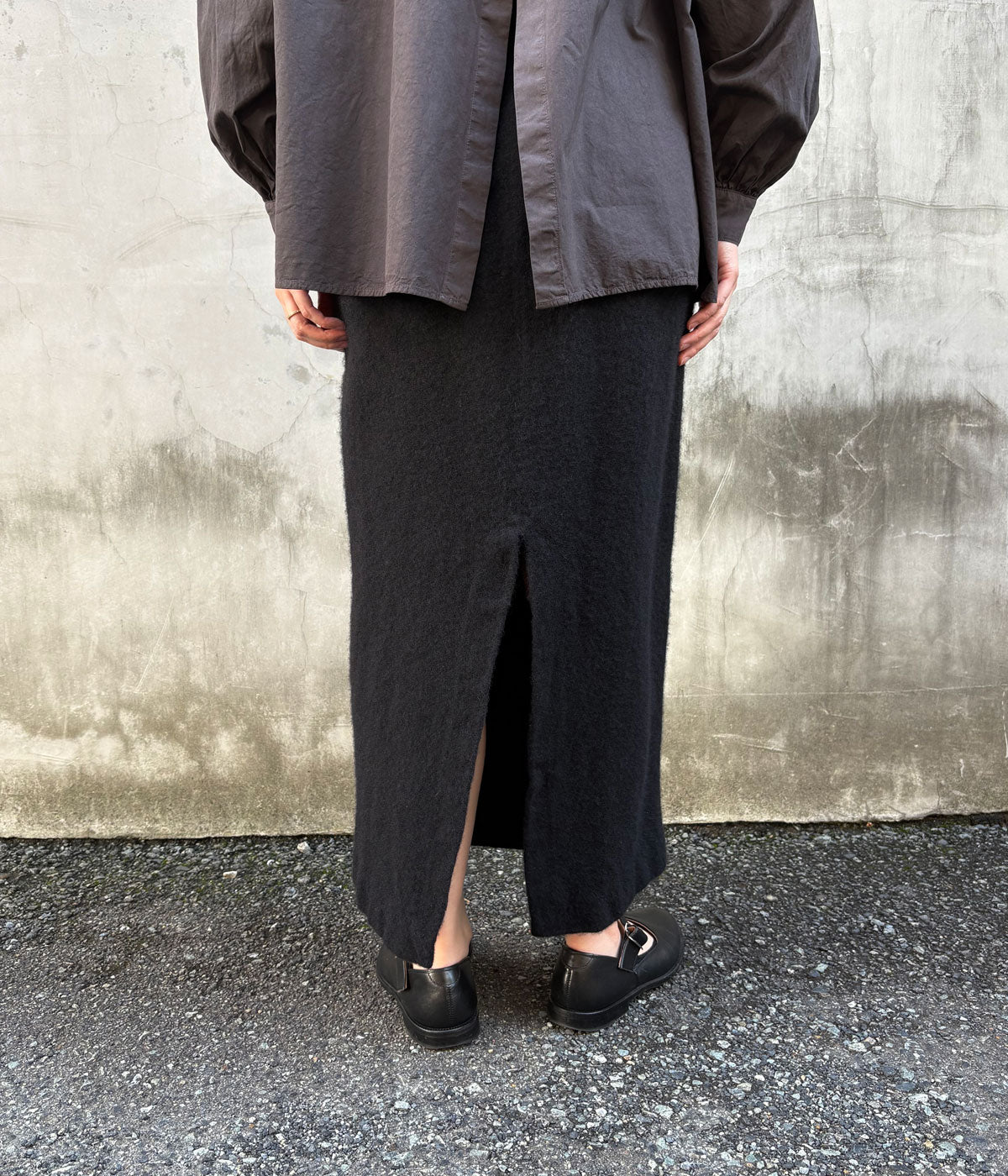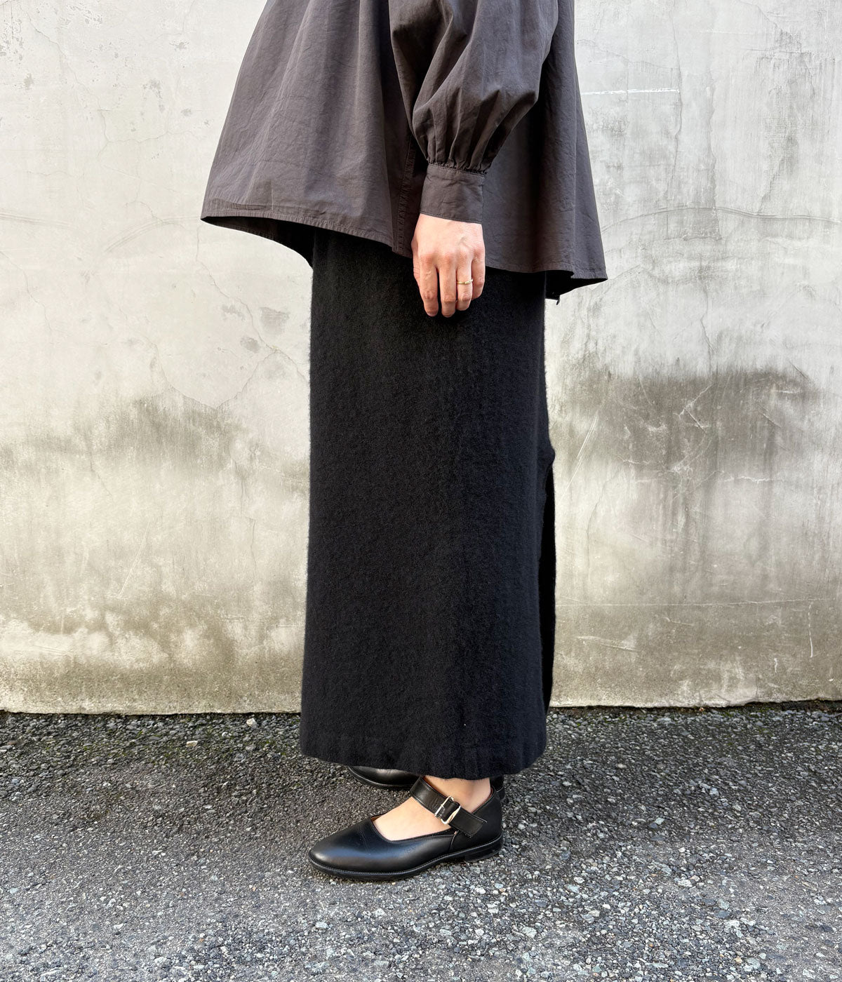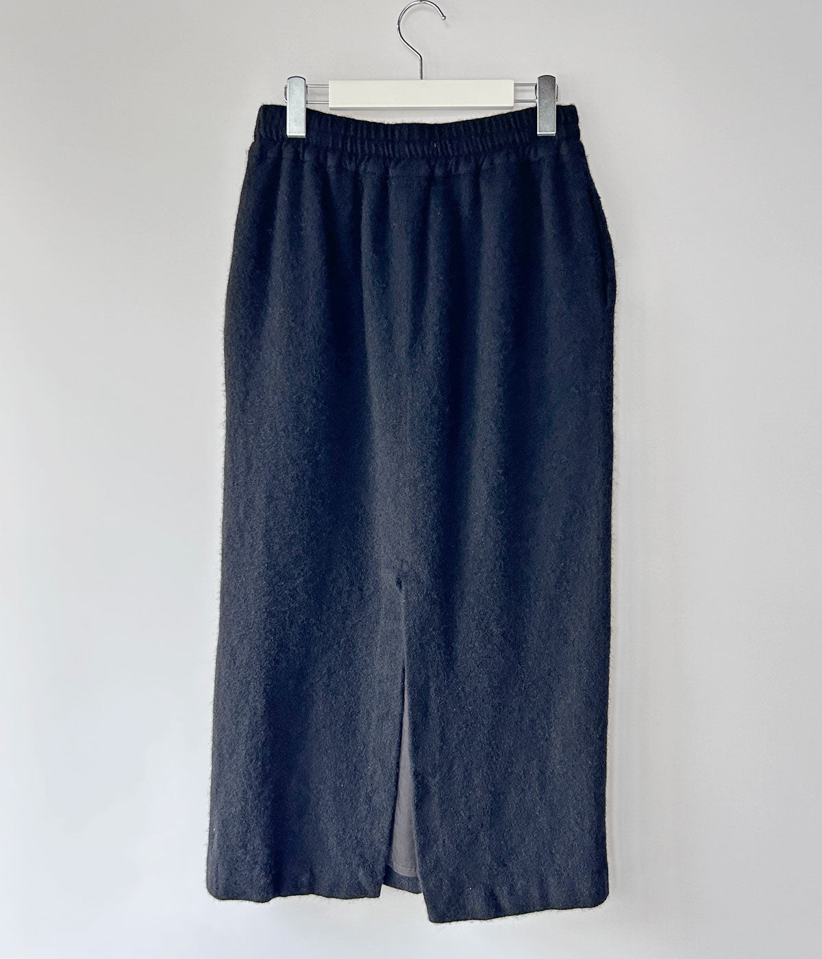 holkから、SKIRTが入荷しました。起毛させたウール素材を使用したシンプルなスカート。両サイドにポケットを設け、後ろ側の裾にスリットを入れたデザイン。ウェストにゴム入りドローコードを仕込み絞って調整できます。適度なボリュームでぬくもりを感じる1着。