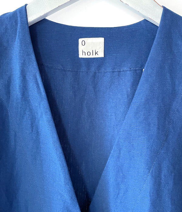 holkから、WOMAN GAWNが入荷しました。胸元のVラインが美しい、比翼仕立ての2か所ボタン留めによる軽めのアウター。コットンリネン素材を使用し、通気性が良く季節に合った1着。サイドポケット付き、深めに入れたサイドのスリットがシルエットに動きを作ります。