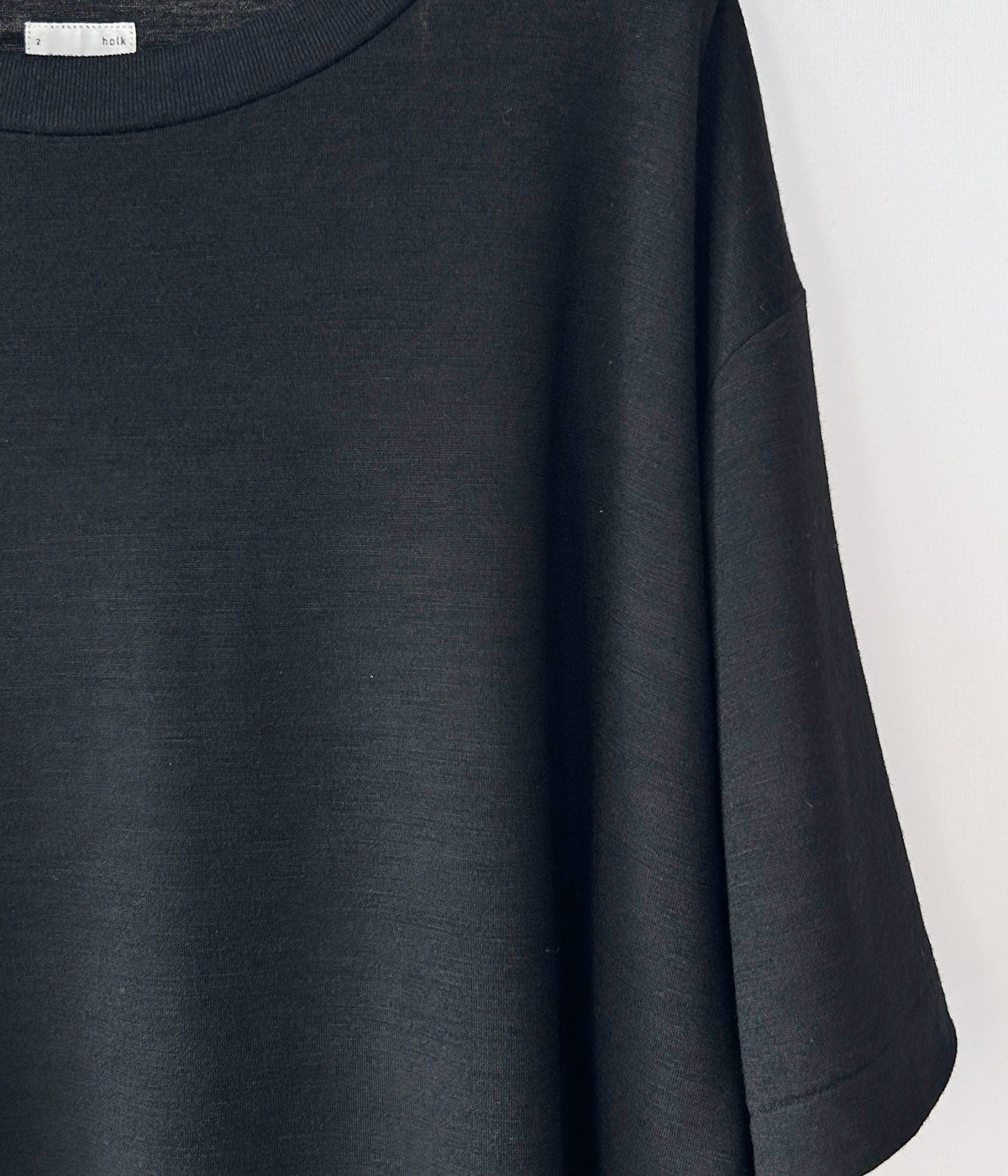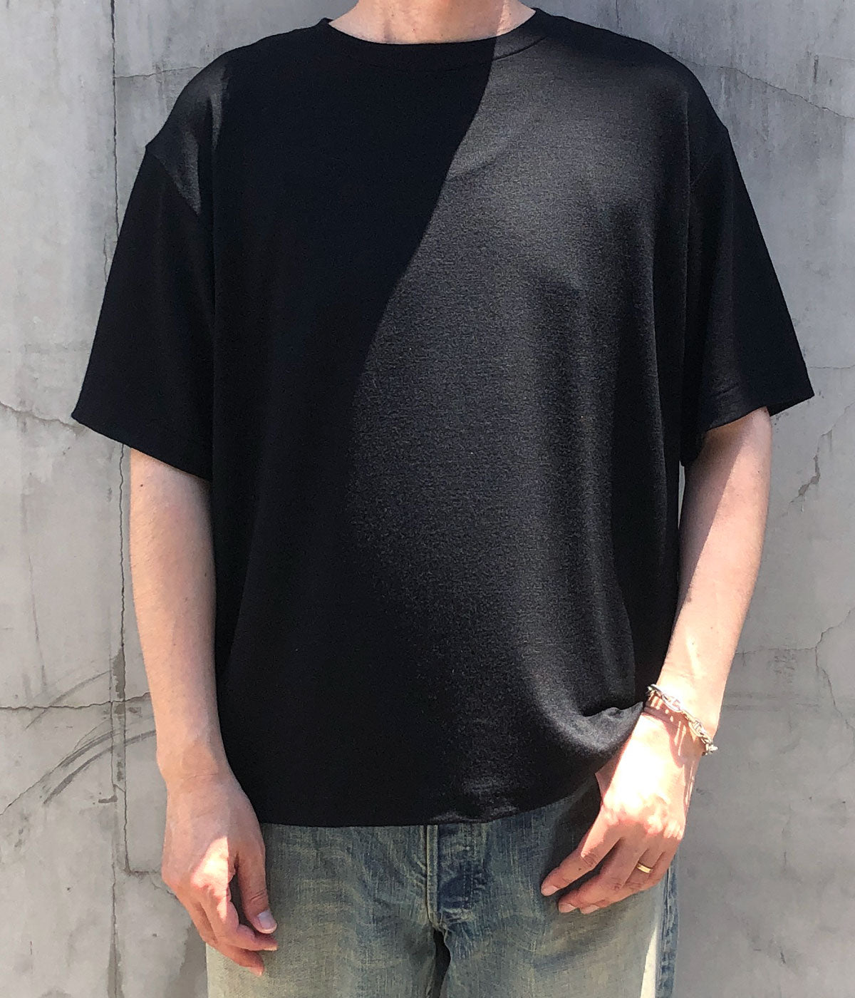 holkから、WOOL S/S TSHIRTが入荷しました。伸縮性の良さと、サラッとした質感が心地よい、ウール仕立ての半袖サマーニット。襟周りはリブ付きのデザインなので一見普通のTシャツにも見えますが、素材で勝負の上質な夏の1着。ハイゲージな編み込みによる上品な雰囲気が差をつける1着。