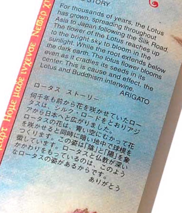 高品質なオイルを使用したハリウッド ランチ マーケットのインセンス。火を灯すと1時間弱燃え続け、途中で火が途絶える等の心配もありません。 パーケージにはオリジナルの絵柄がプリントされています。 LOTUS STORY、NEVER CHANGE LIFEから‘旅は人生の道標’と聖林公司のSPIRITSが詰まったアイテム。お好みの香りをお選び下さい。