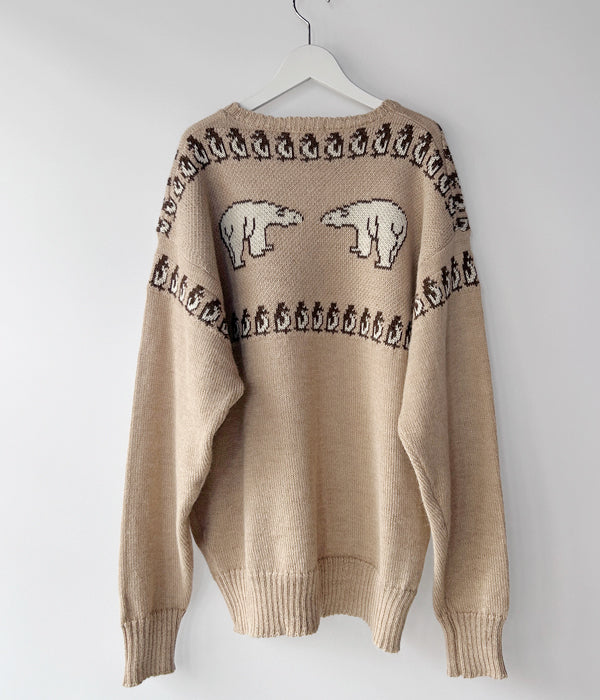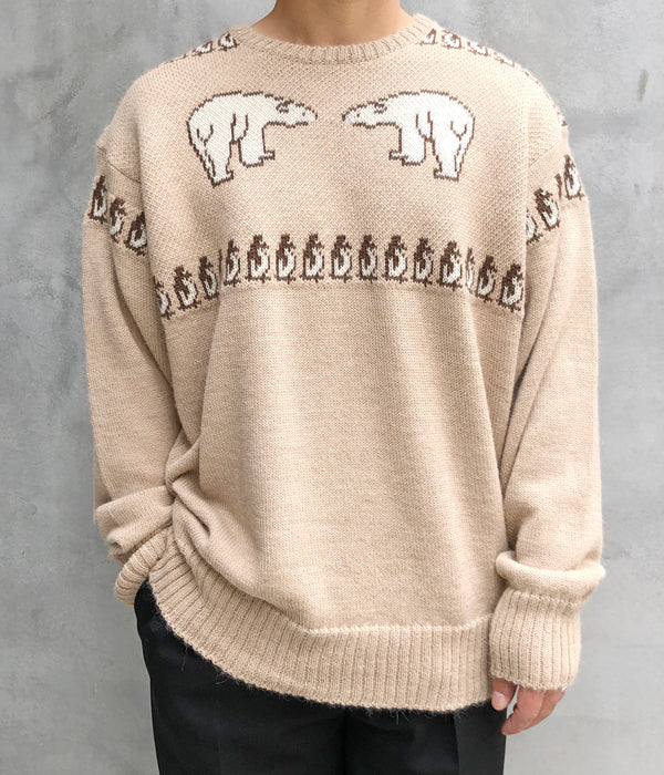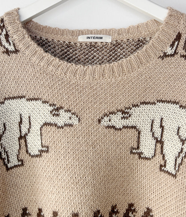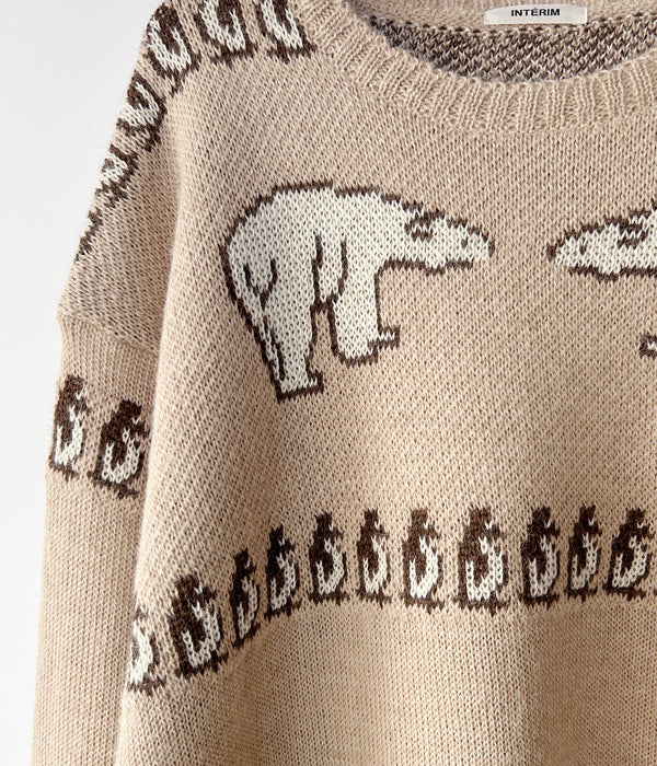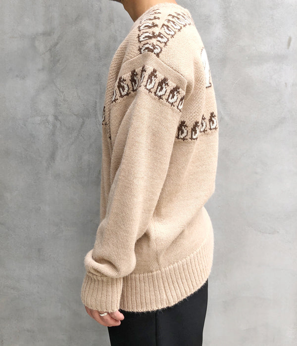 INTERIM/40s ANIMAL JACQUARD ALPACA CREW SWEATER (BEIGE/BROWN)