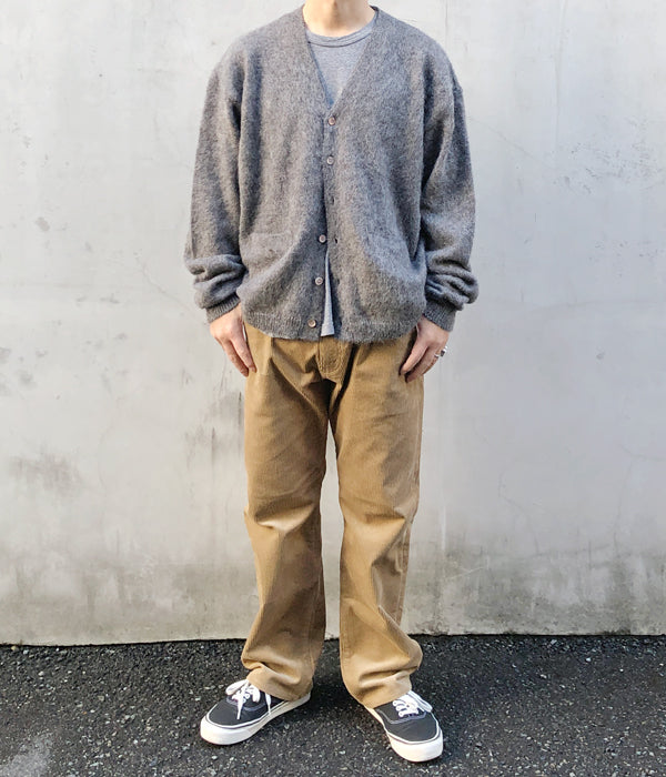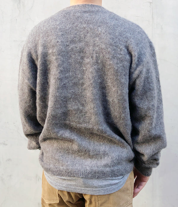 INTERIMから、50'S KID MOHAIR CARDIGANが入荷しました。近年ビンテージ市場での高騰が続くモヘアカーディガン、希少なキッドモヘアを使用して50'~60'のイメージで作製しました。キッドモヘアならではのふわふわとした起毛感で、柔らかく優しい風合いが極上の着用感を与えてくれます。光沢のあるやや小ぶりな貝ボタンに、スリーブポケットを設けたクラシックなデザイン。