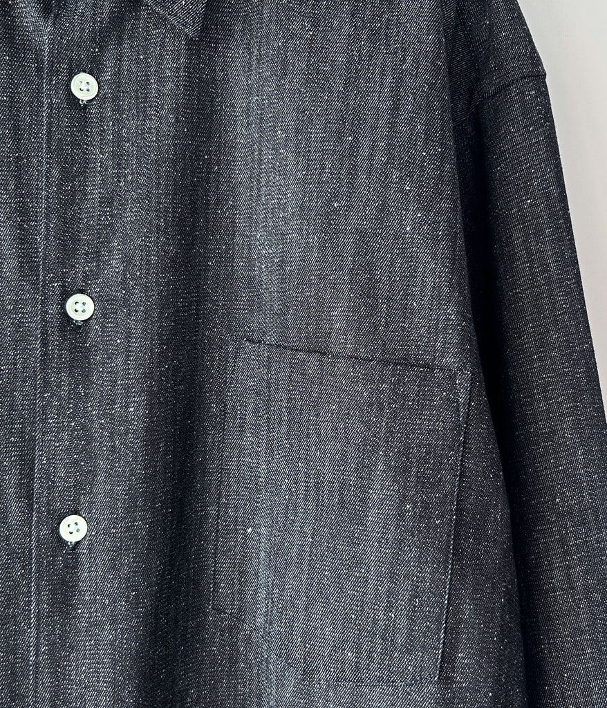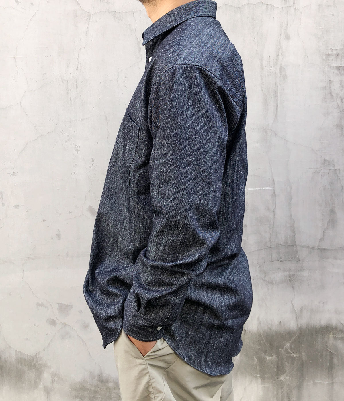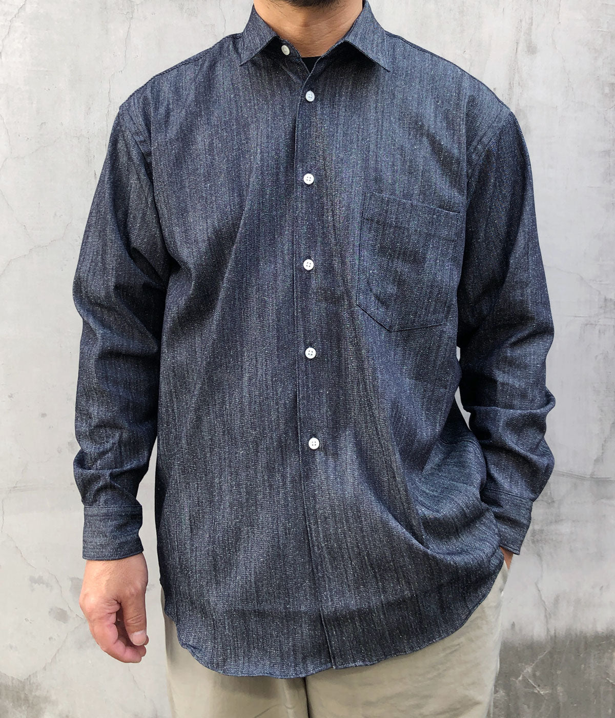 INTERIM/7oz SILK DENIM L/S REGULAR COLLAR SHIRT (NAVY)