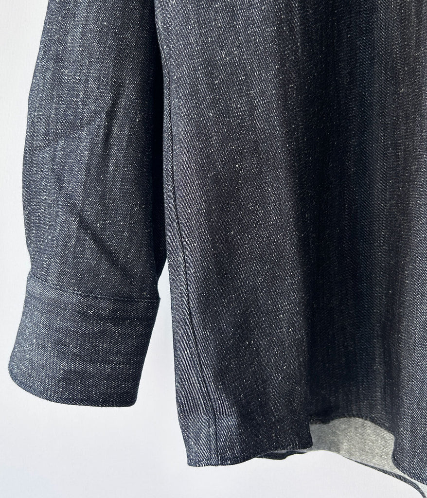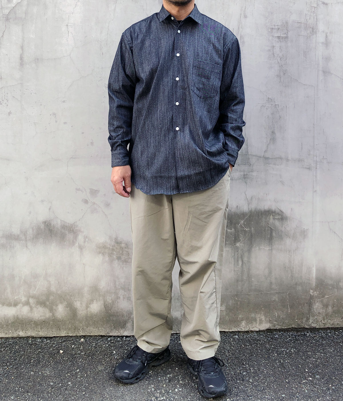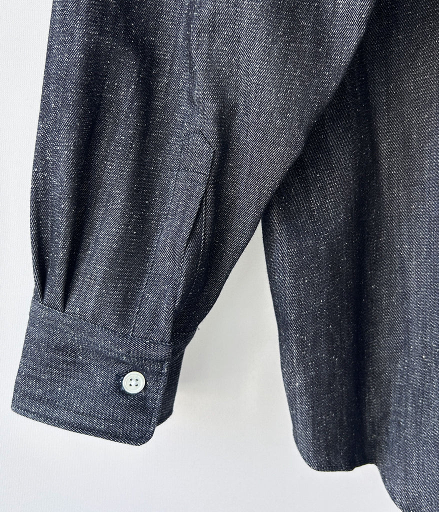 INTERIM/7oz SILK DENIM L/S REGULAR COLLAR SHIRT (NAVY)