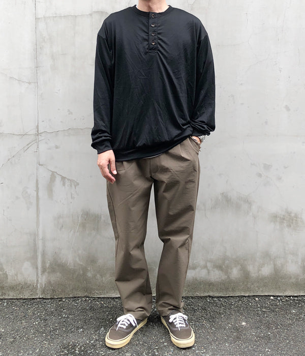 INTERIMから、EXTRA FINE MERINO WOOL JERSEY HENRYが入荷しました。エクストラファインメリノを使用したウール天竺素材を使用したヘンリーネック。インナーから、1枚での着用までを想定した作りでチクチク感もなく、光沢がありドレープ感が美しい高級感のある1着です。リブ付きのデザインに、光沢のある水牛ボタンがポイント。