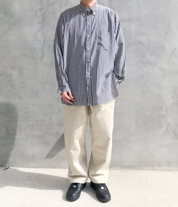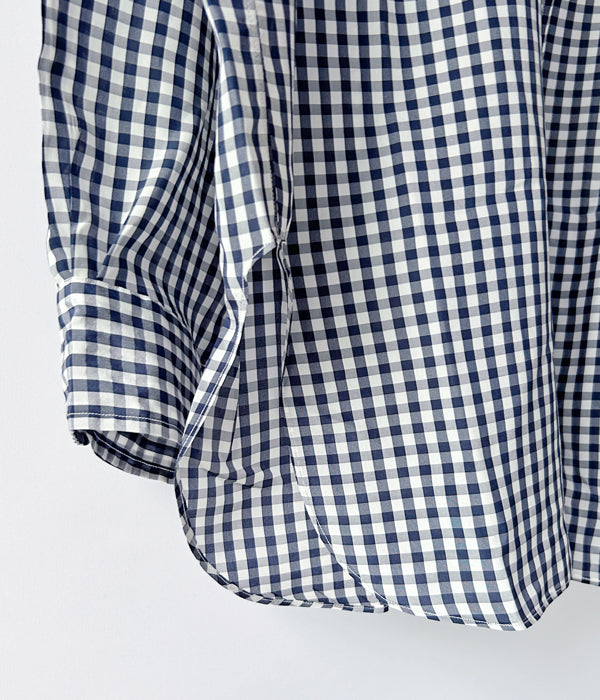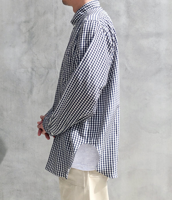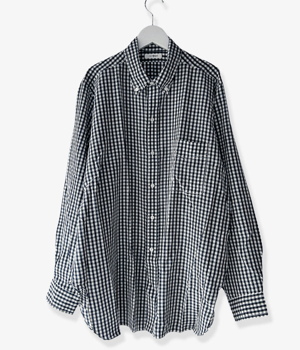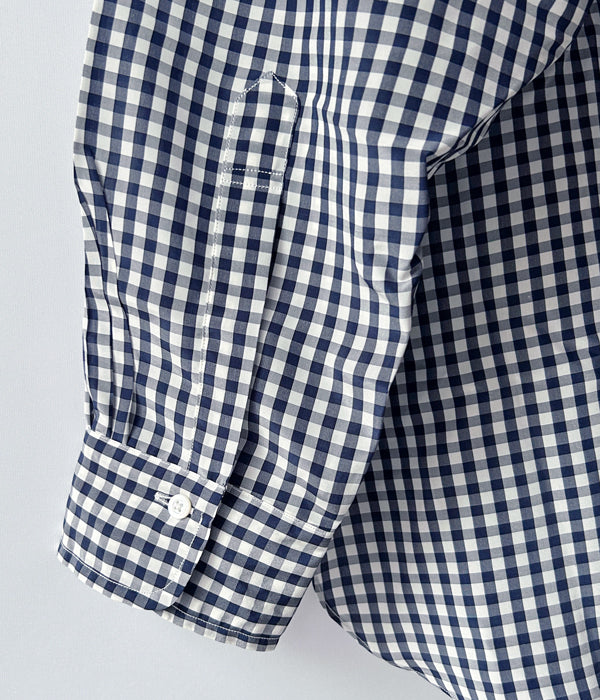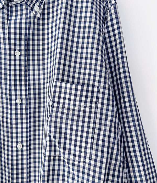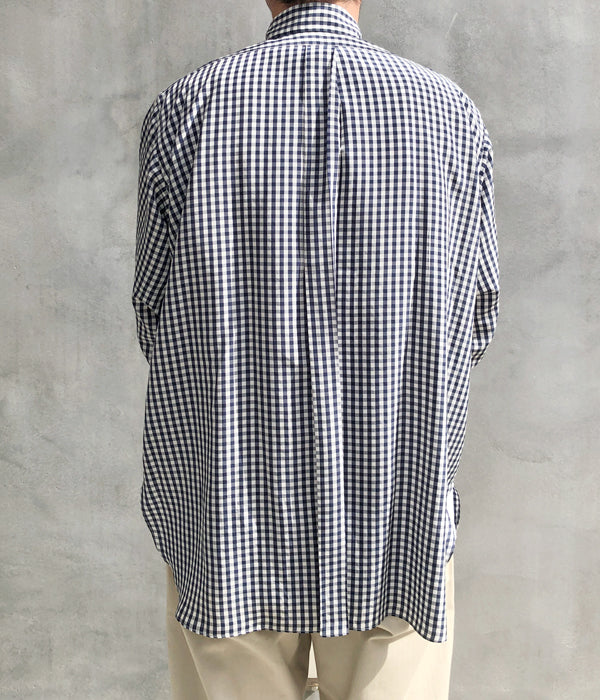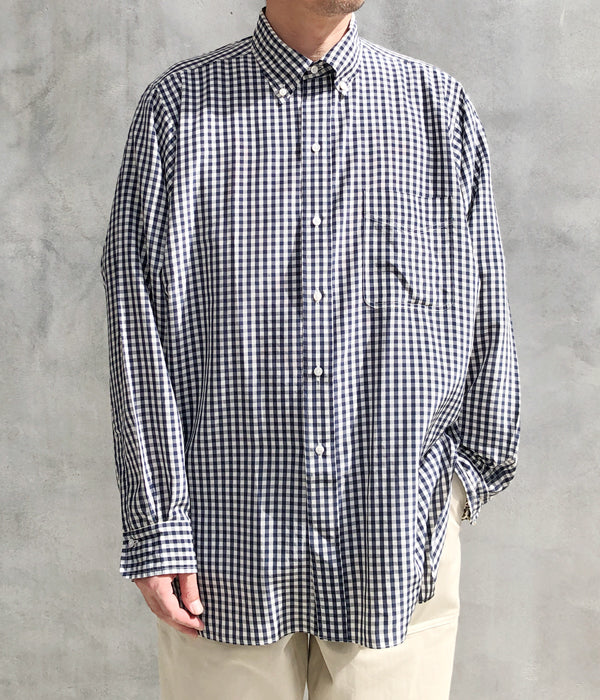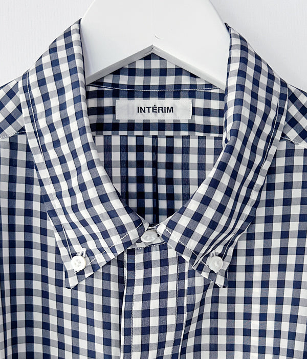 INTERIM/GINGHAM SILK POPLIN MANHATTAN BUTTON DOWN SHIRT (NAVY CHECK)