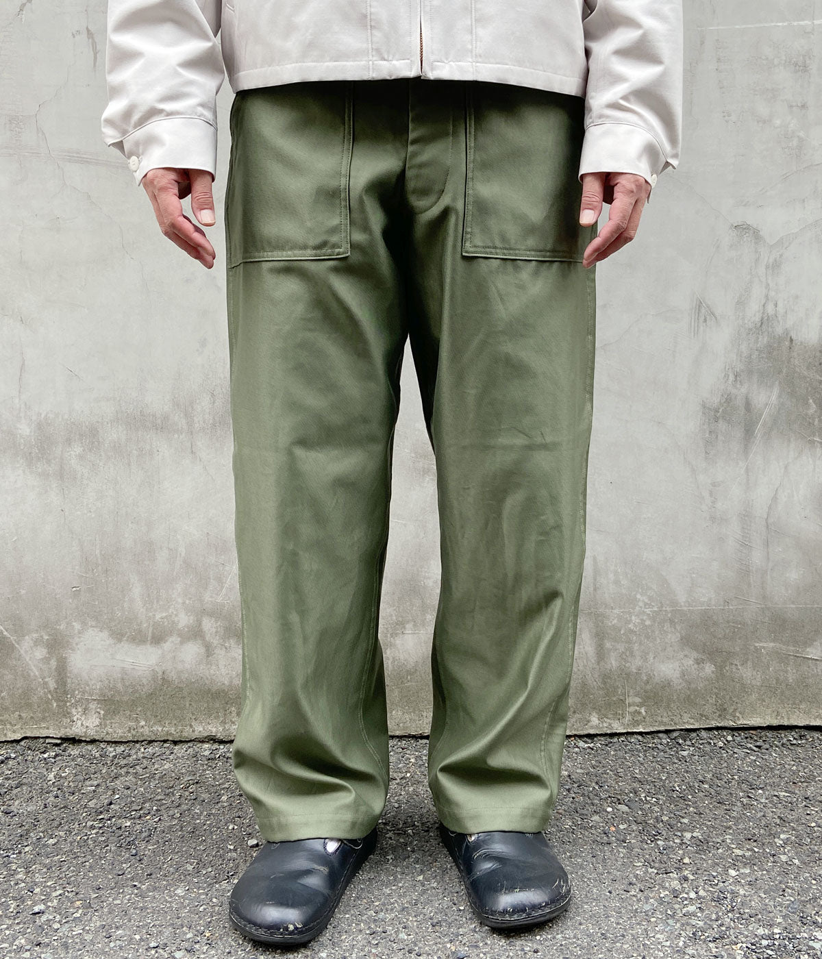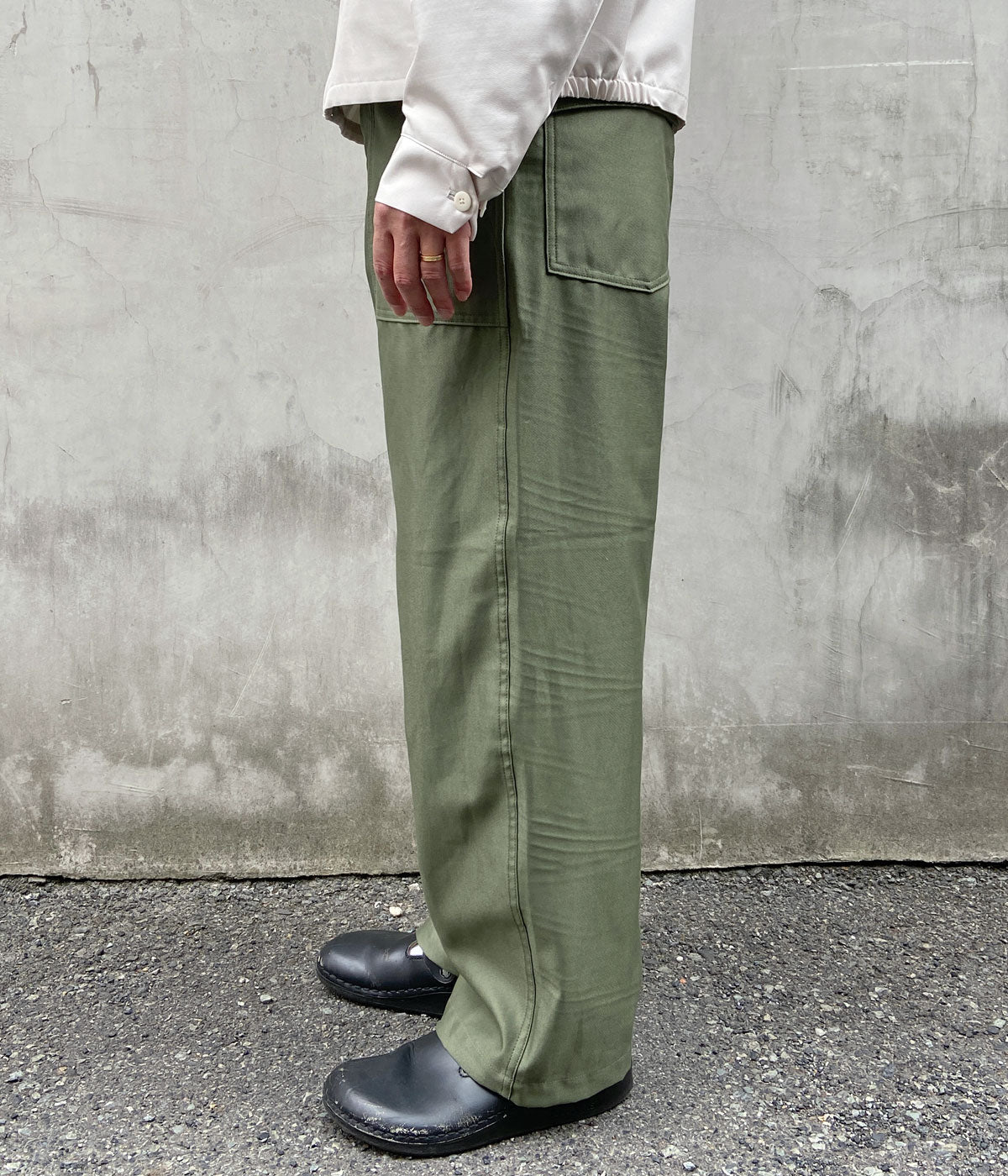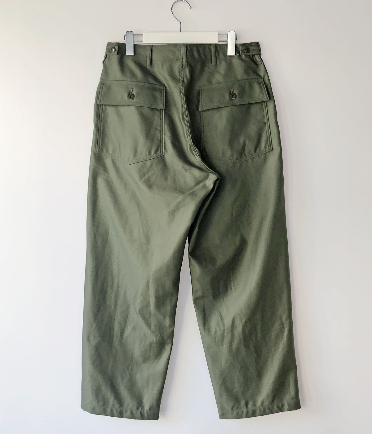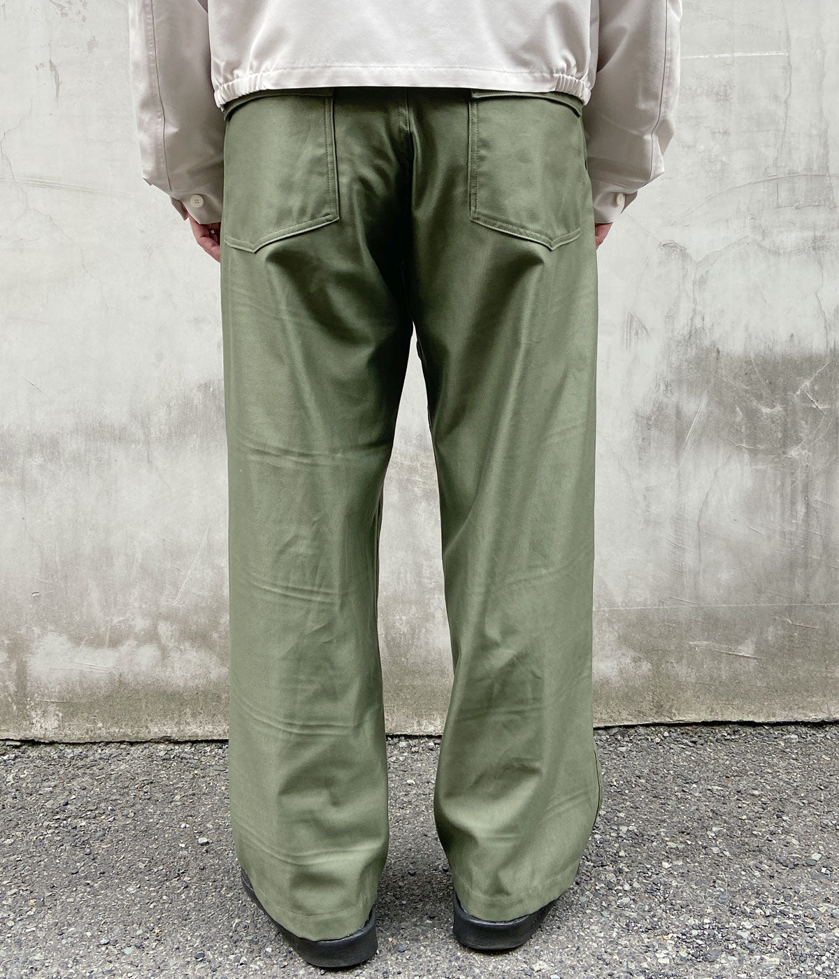 INTERIMから、GIZA BACK SATIN BAKER PANTSが入荷しました。1950~1960年代の初期型をモチーフにした、ストンと落ち感のあるストレートシルエットのベイカーパンツ。シルクのような肌触りや高い強度、美しい光沢が特徴のギザコットンを使用したバックサテン生地で織り上げました。フロントの大きなパッチポケット&バックのフラップ付きのポケットがオーセンティックの証。2本針ステッチのサイドラインがポイント。