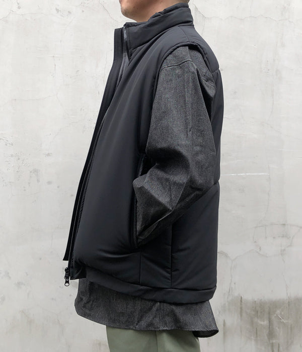 INTERIMから、HYPER BIG HI-LOFT WATER PROOF INSULATED VESTが入荷しました。米軍特殊部隊の中綿ベストをイメージして仕立てられた保温性の高いベスト。高い防水透湿性を兼ねそろえたダーミザクス素材(日本初の機能素材!)を表地に、中綿にはUSAスリーエム社のシンサレートを使用しています。止水ジップのダブルファスナー、ポケット内に絞りを仕込んだドローコードなど凝ったディティール。