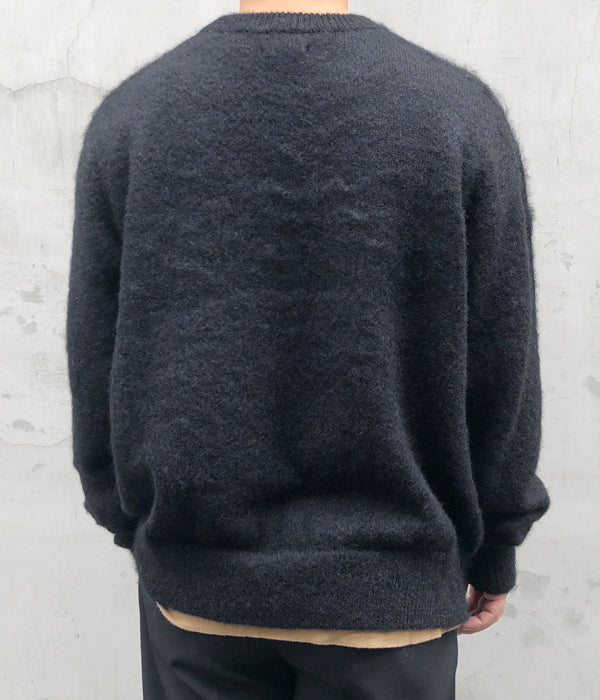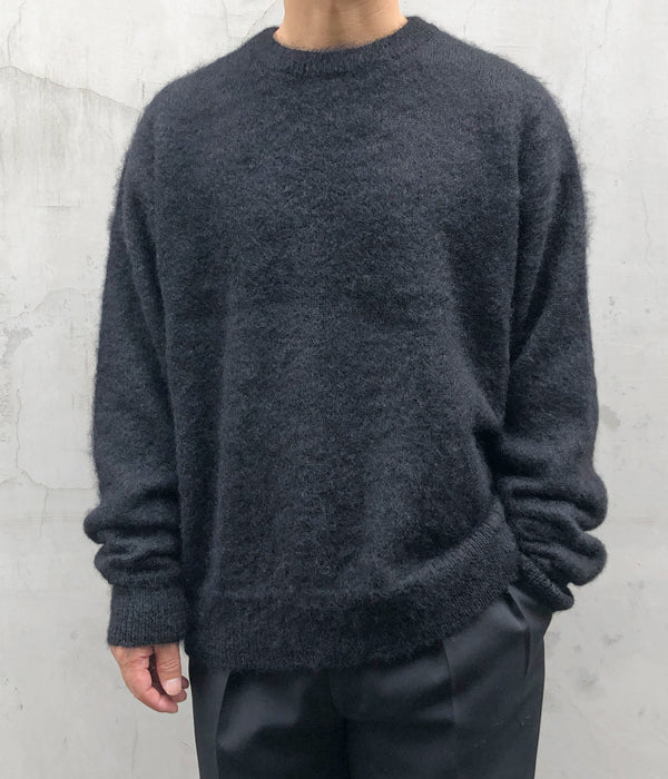 INTERIMから、KID MOHAIR CREWが入荷しました。キッドモヘア、アルパカ、ウールのブレンド素材を使用した起毛感のあるモヘアセーターです。モヘアの高級感のある光沢と、ヌメリ感が特徴のアルパカの特性がいかされたぬくもり溢れる1着。袖周りにゆったりとした溜まりを表現するために、やや長めに設計された袖丈がエレガントなモヘアニットとマッチしています。国内のニット専業工場で生産されたこだわりの仕上がりをぜひ。