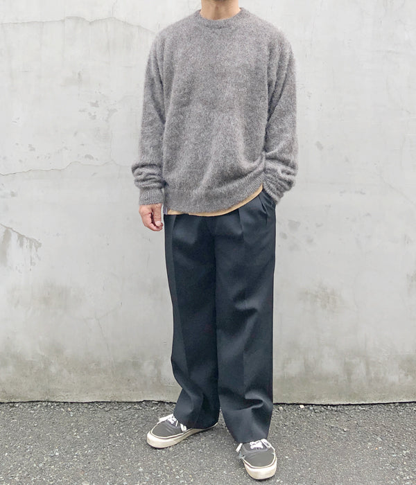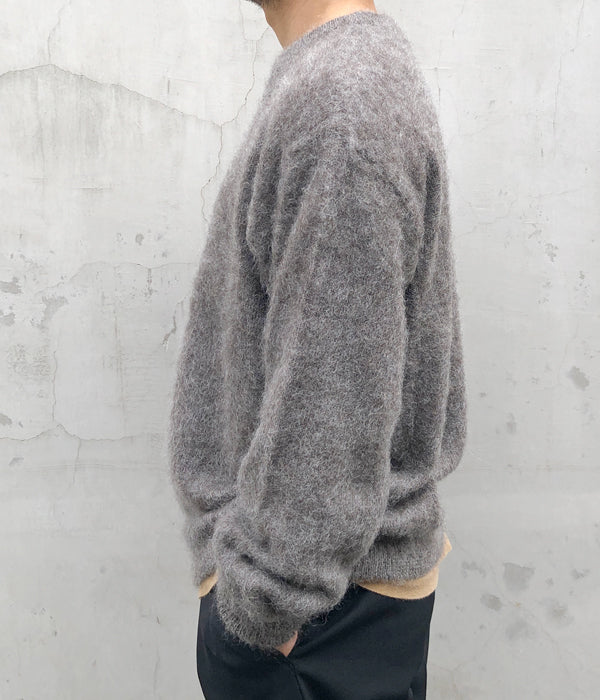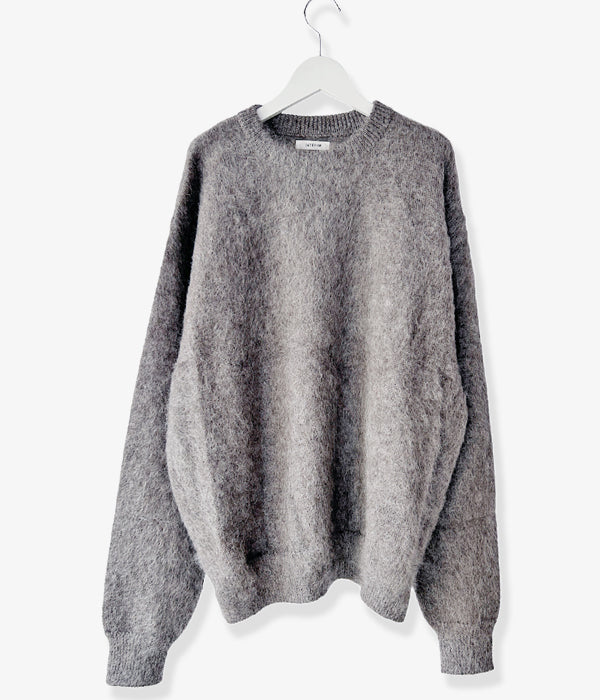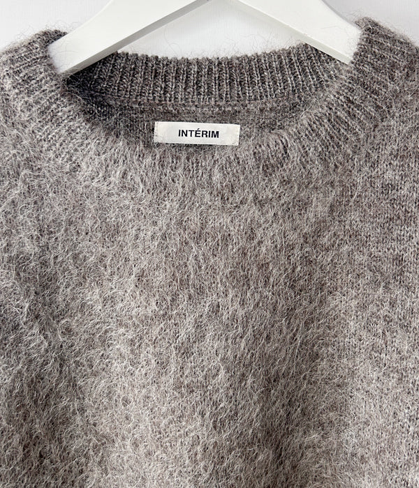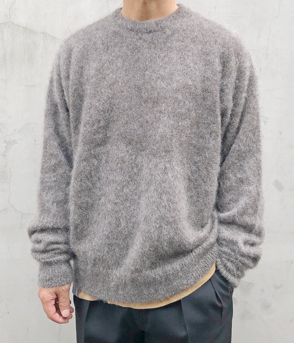 INTERIMから、KID MOHAIR CREWが入荷しました。キッドモヘア、アルパカ、ウールのブレンド素材を使用した起毛感のあるモヘアセーターです。モヘアの高級感のある光沢と、ヌメリ感が特徴のアルパカの特性がいかされたぬくもり溢れる1着。袖周りにゆったりとした溜まりを表現するために、やや長めに設計された袖丈がエレガントなモヘアニットとマッチしています。国内のニット専業工場で生産されたこだわりの仕上がりをぜひ。