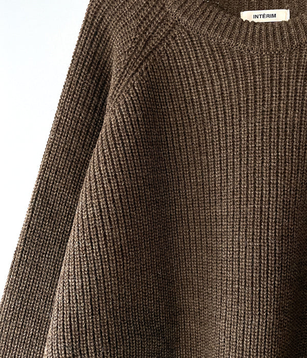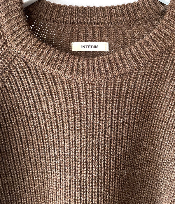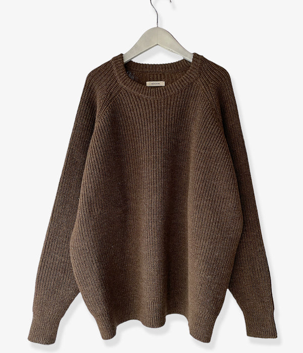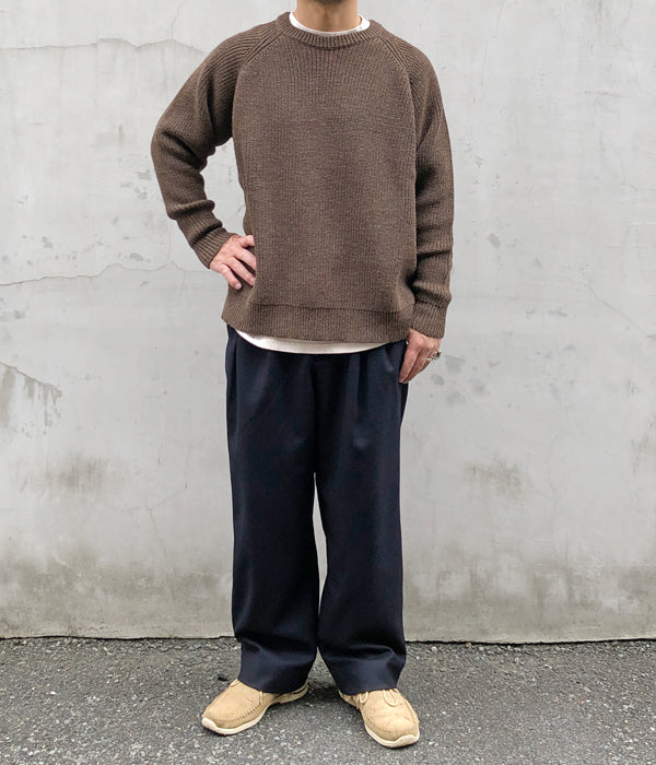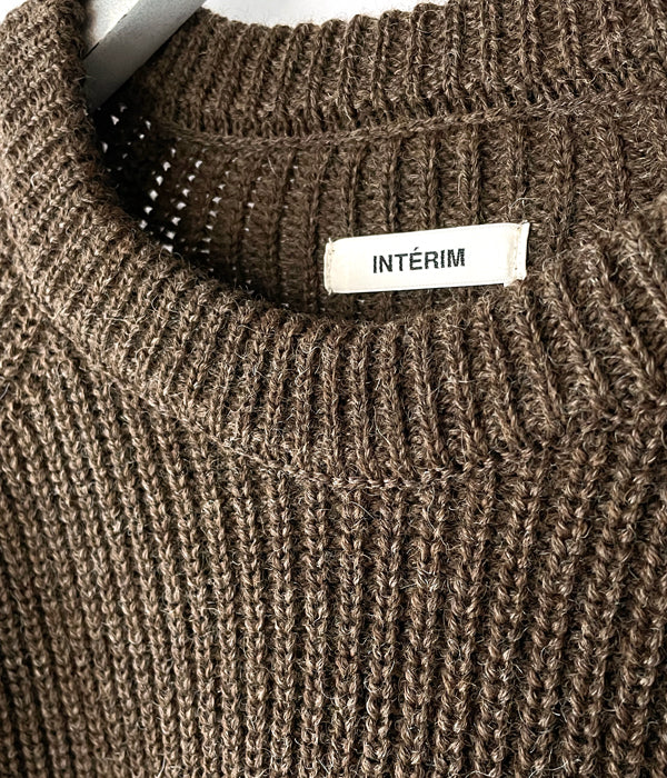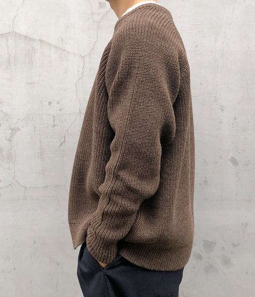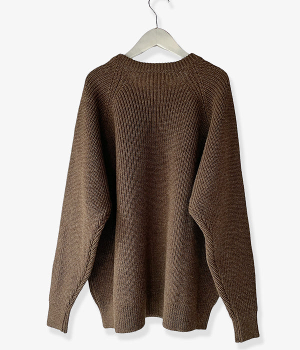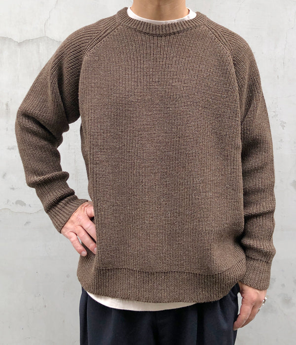 INTERIM/NATURAL WOOL HEAVY FISHERMAN CREW SWEATER (NATURAL BROWN)