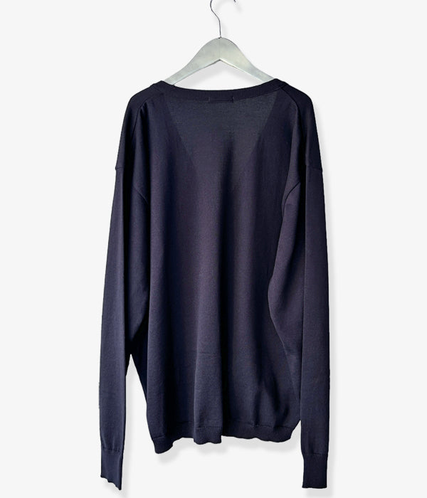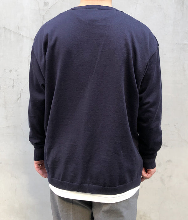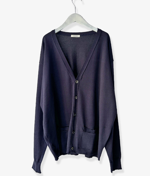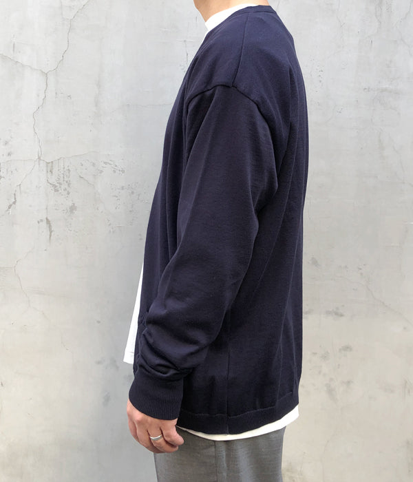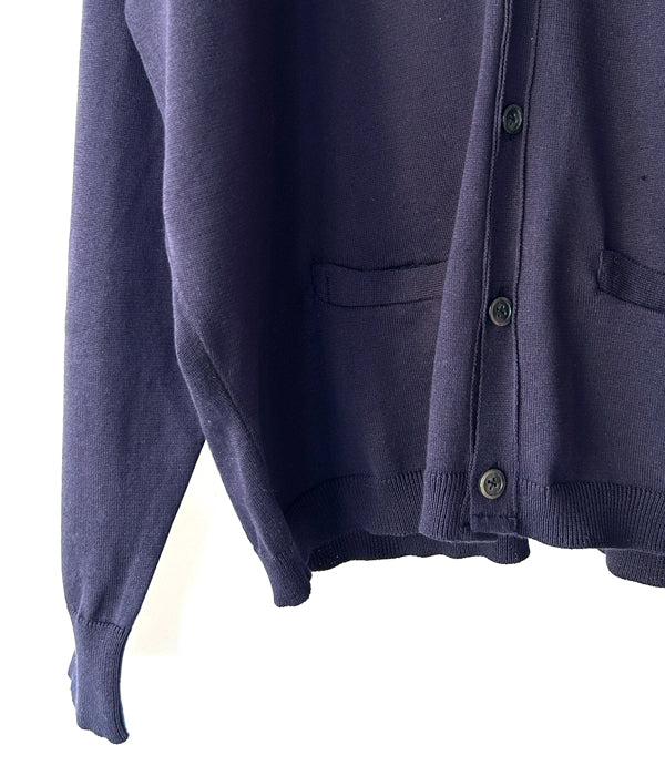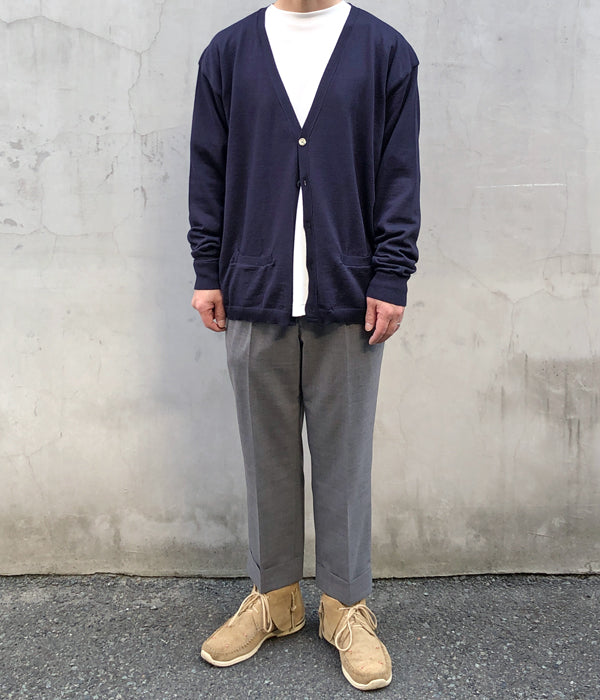 INTERIMから、SUVIN GOLD CARDIGANが入荷しました。スヴィンコットンの中でも上位品種に位置付けられるスヴィンゴールド(綿総生産量のうち0.003%のみの採取!!)を贅沢に使用したコットンカーディガン。素材の良さを活かす光沢のある濃紺カラーに染め上げました。5つボタンの首元の開きは若干狭めに仕立て上品な雰囲気を演出します。ポケット付き。