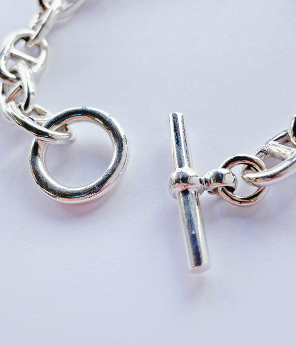 INTERIMから、TAXCO SILVER CHAIN BRACELET A-TYPEが入荷しました。メキシコ タスコ製によるシルバー925を使用したハンドメイドジュエリー。コマを繋げたチェーン本体とT型の留め具で固定するタイプのブレスレット。固く結ばれた絆を意味する人気の高いデザイン。