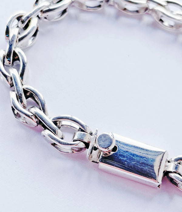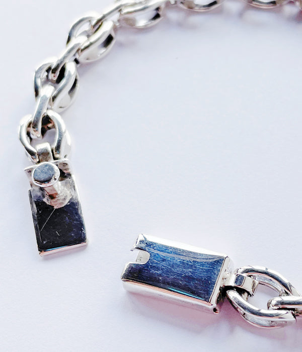 INTERIMから、TAXCO SILVER CRASP BRACELETが入荷しました。メキシコ タスコ製によるシルバー925を使用したハンドメイドジュエリー。ユニークな楕円形のモチーフをつなぎ合わせた美しいジュエリーです。押し込み式のワンタッチクラスプを使用したシンプルなデザイン。