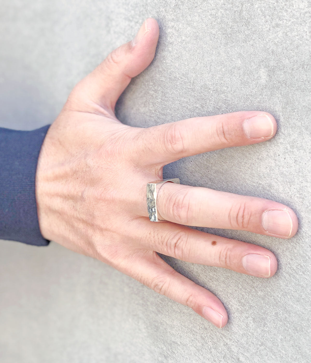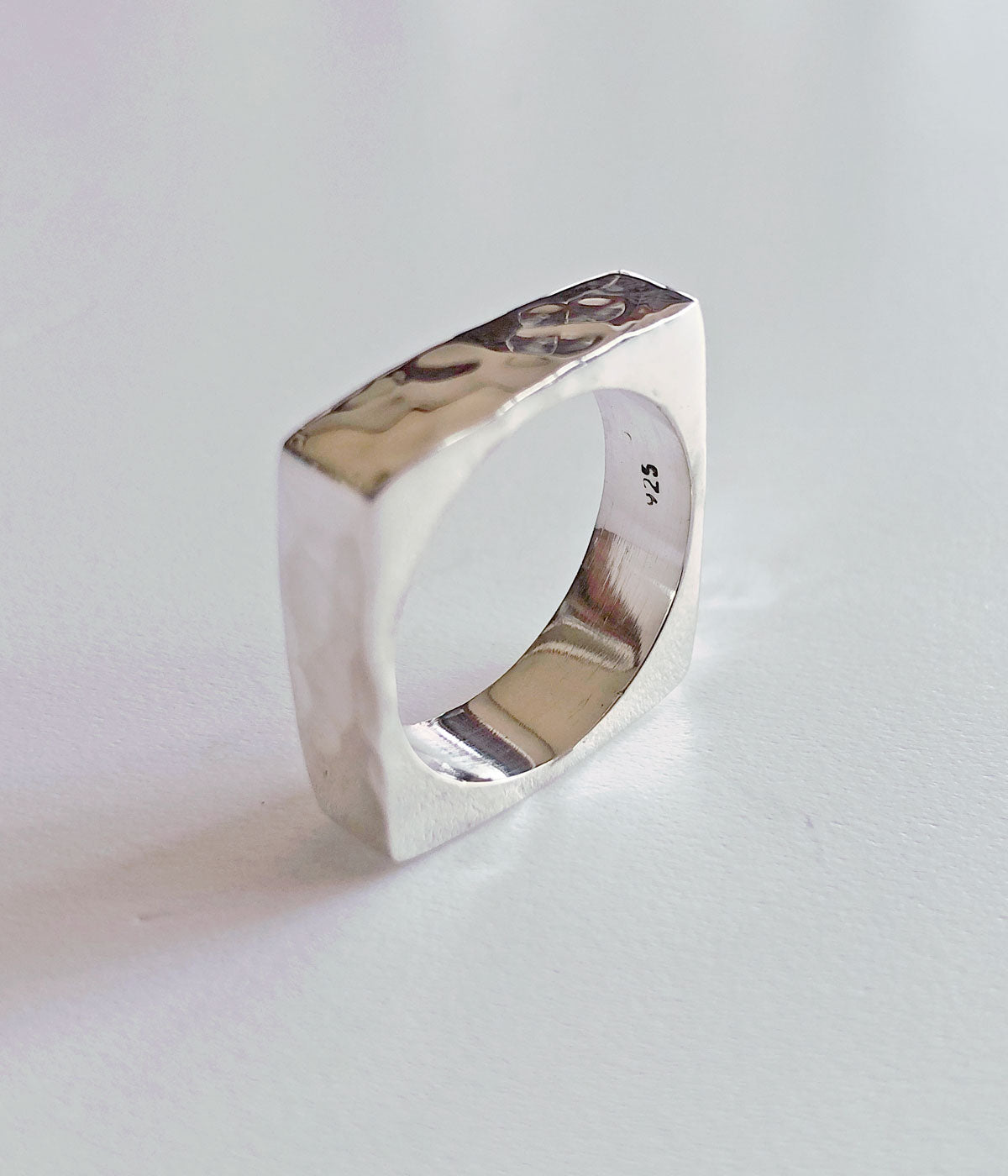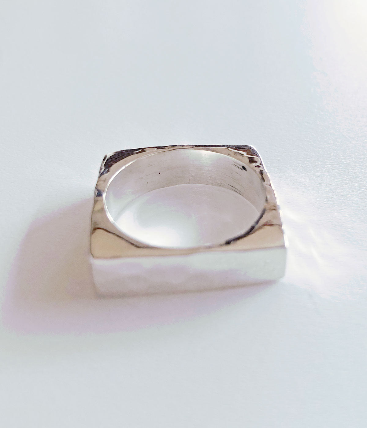 INTERIMから、TAXCO SILVER FLAT BUMPY RINGが入荷しました。メキシコ タスコ製によるシルバー925を使用したハンドメイドジュエリー。やや丸みのあるスクエアな形状のリングの表⾯をたたき、凹凸感をつけたデザインです。シルバーならではのしっかりとした重さと存在感が魅力。