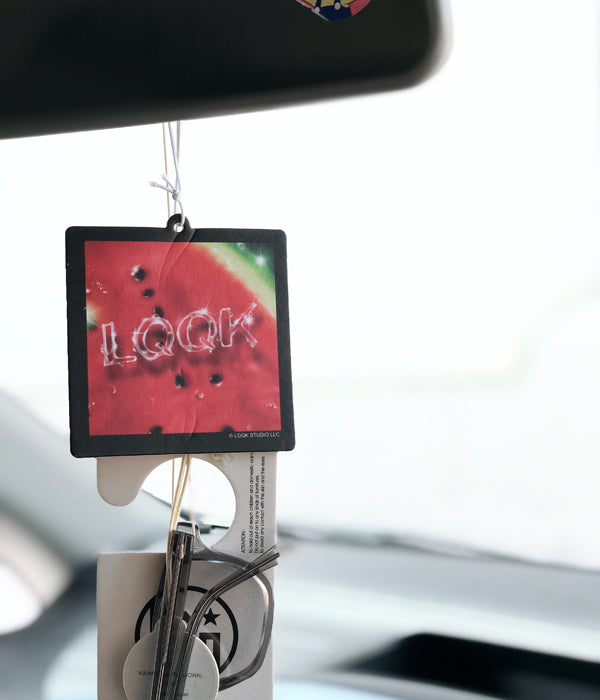 LQQK StudioからAIR FLESHENERが入荷しました。タグにフルーツの接写とLQQKのロゴをデザインしたエアフレッシュナー。3種類からお好みの香りをお選びください。