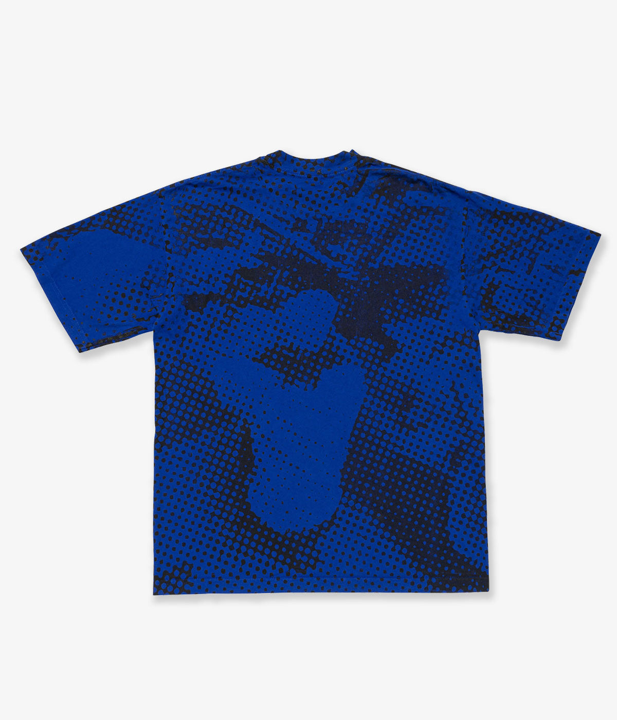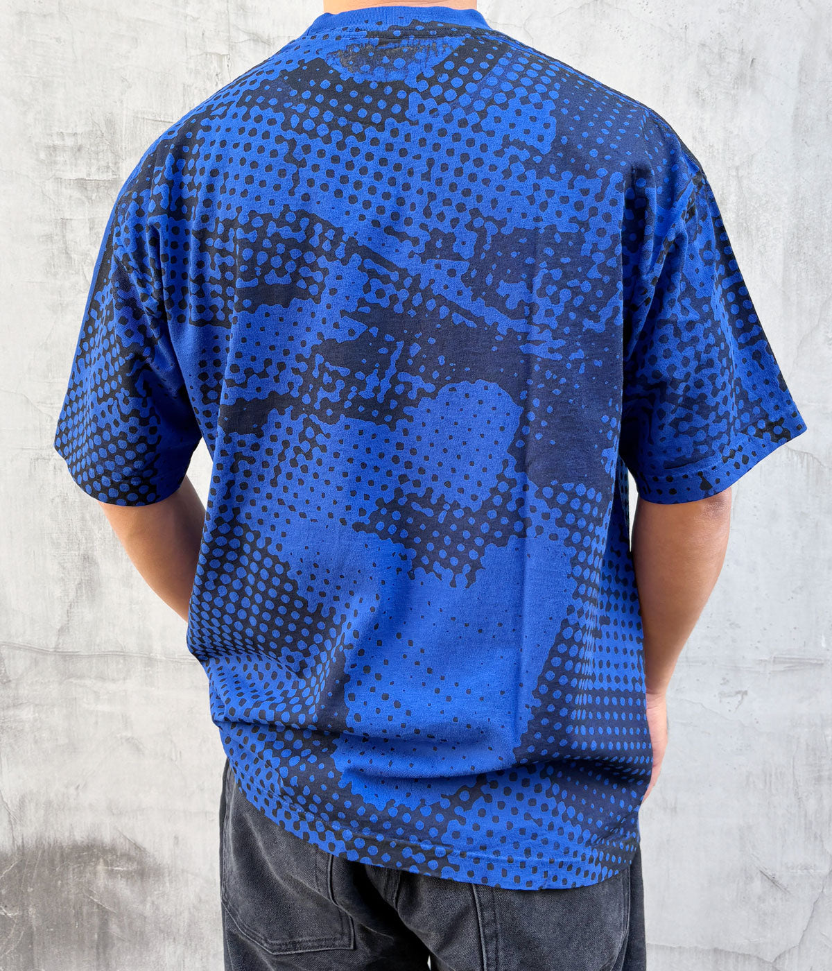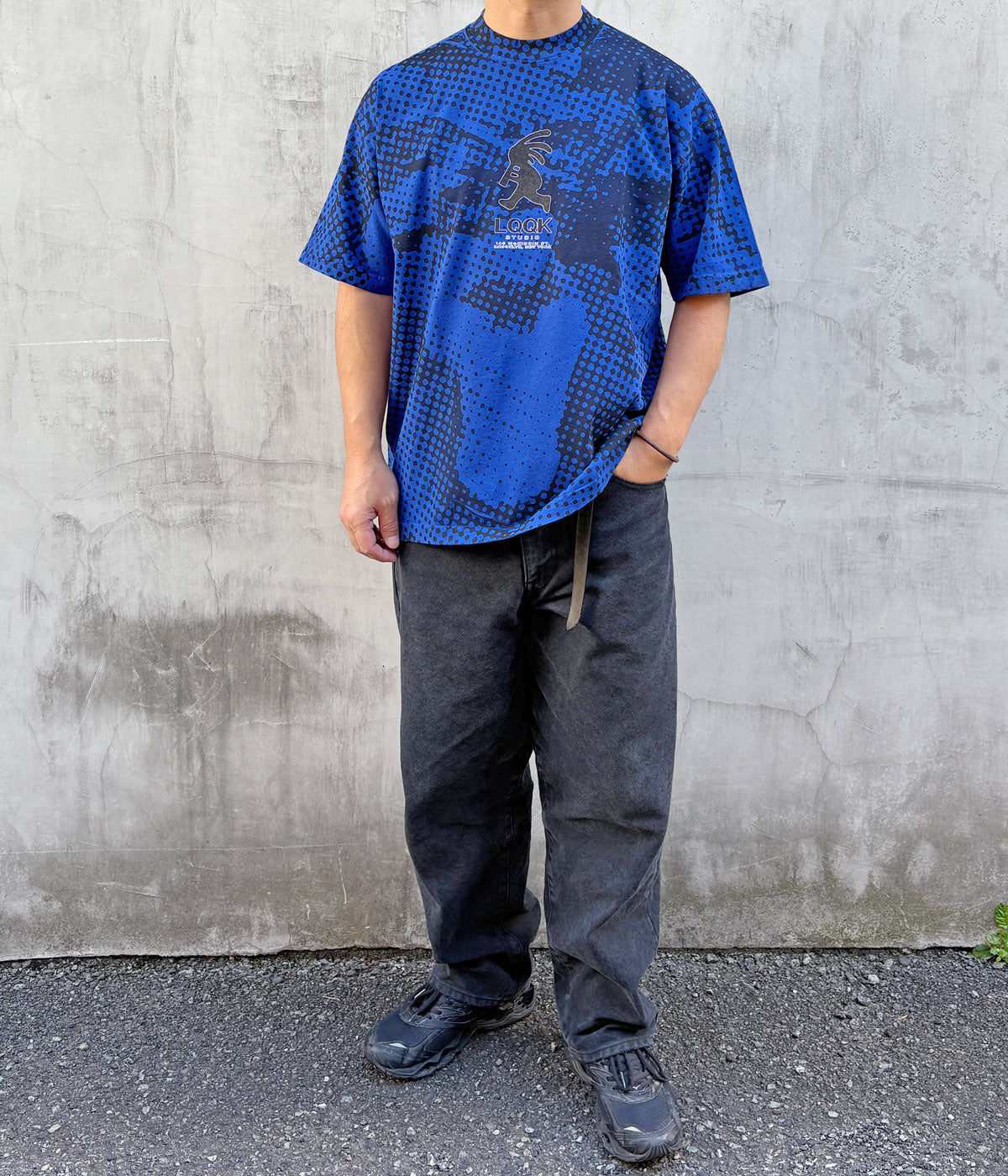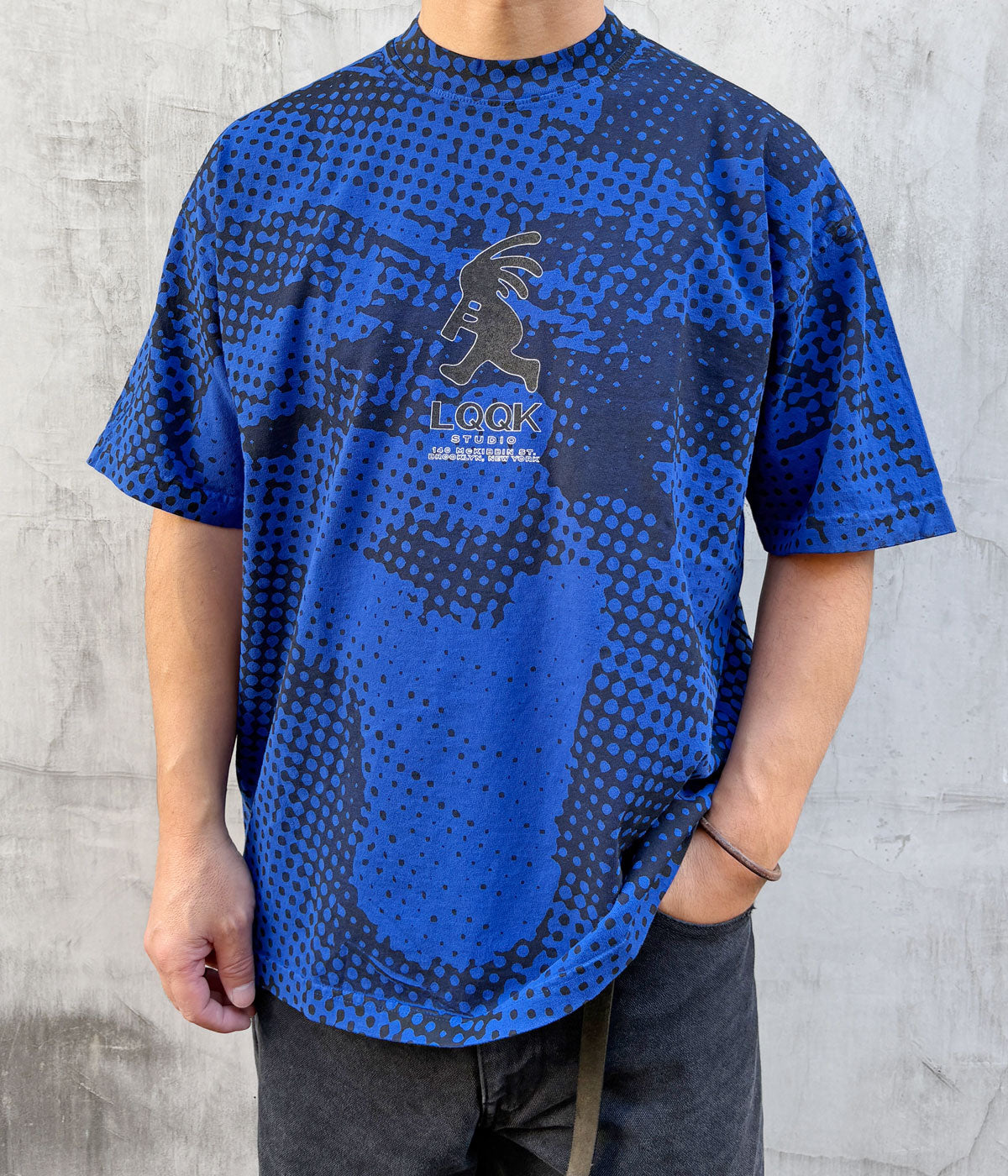 LQQK Studioから、AOP STUDIOが入荷しました。ネイティブアメリカンの神話に登場する“ココペリ"をフロントに描いたデザインのSS Tシャツ。ブルーのボディにピクセルアート的なドット絵が描かれた派手な1着です!