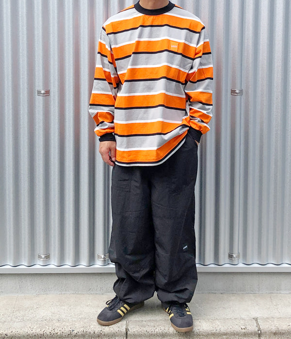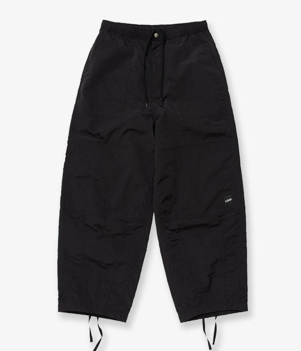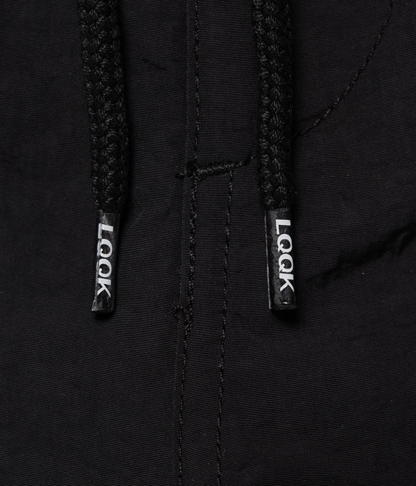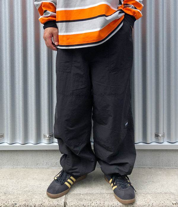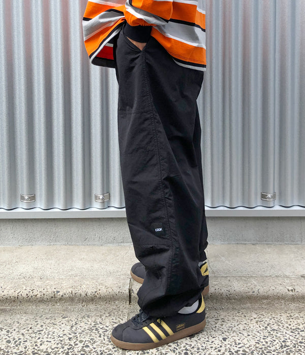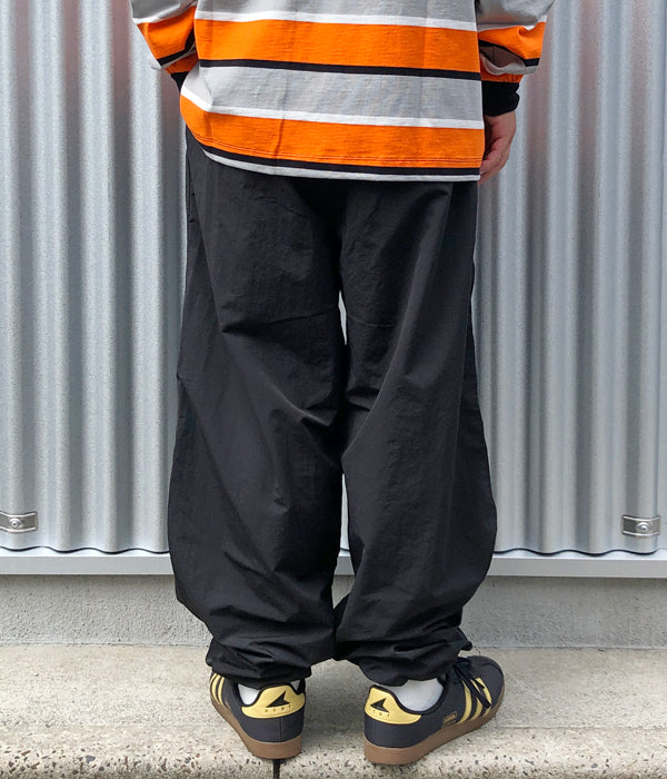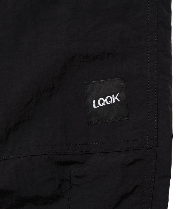 LQQK Studioから、BUGGY PANTSが入荷しました。ナイロン素材を使用したバギーパンツ。ゆったりとしたシルエットに、ウェストはドローストリング&ゴム入りのイージー仕様。裾にもドローコードを仕込み、BOX LOGOの織ネームでワンポイント。