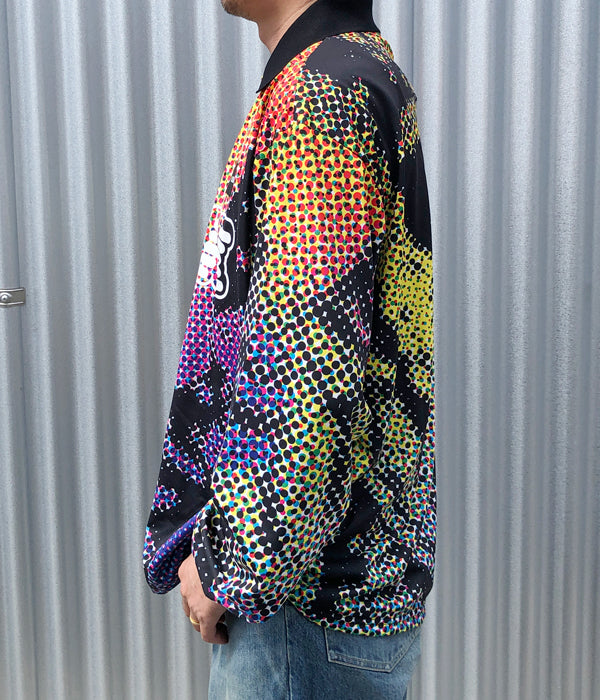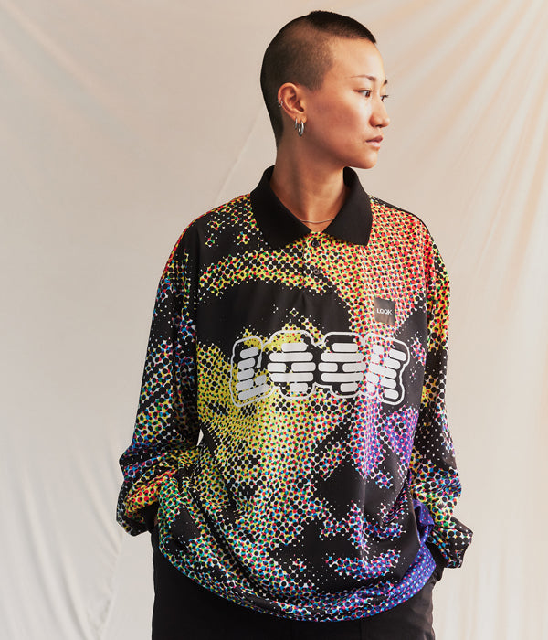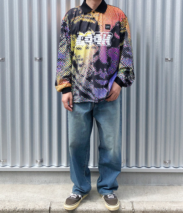 LQQK Studioから、LQQK SUBLIMATED POLY POLOが入荷しました。カラフルなカラーパレットによるインパクトのあるテキスタイルを使用した長袖ポロシャツ。フロントのLQQK Studioのロゴと、ポリ素材ならではの軽快さがポイント。