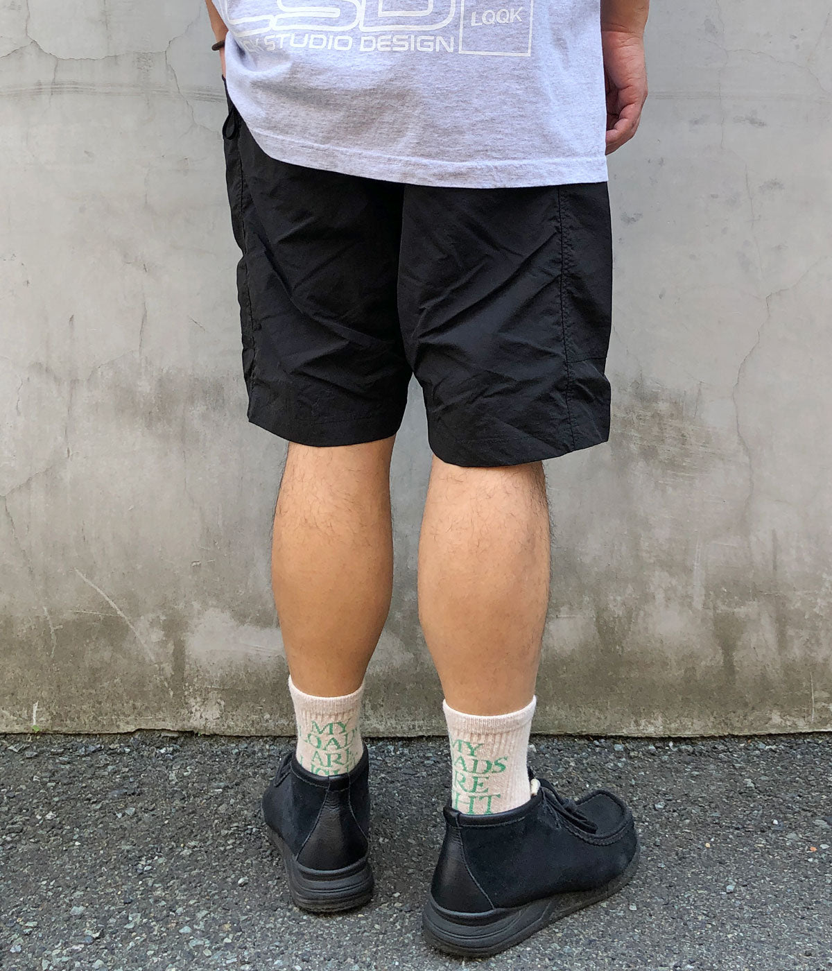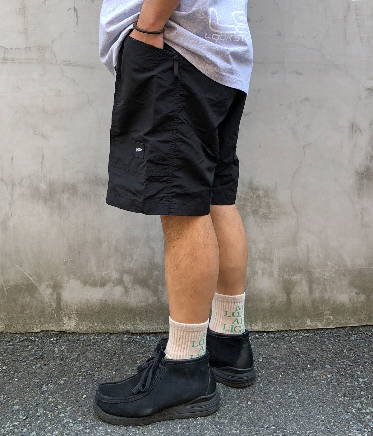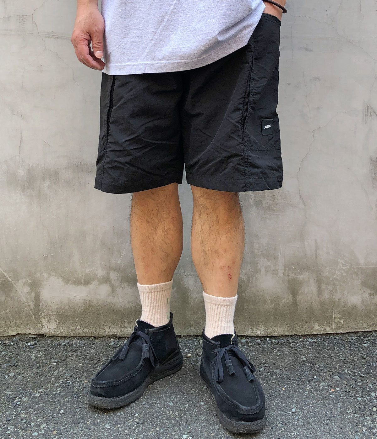 LQQK Studioから、MOTORCYCLE SHORTSが入荷しました。ナイロン素材を使用した、ウェストゴム&ドローコード仕込みのイージーショーツ。ウェストサイドのアジャスターで幅広いサイズ調整が可能なデザイン。サイドのファスナー付きの大容量ポケットに、バックにも2ヶ所ポケットを備えた実用性の高い仕様。左裾のLQQKのラバーパッチがワンポイント。