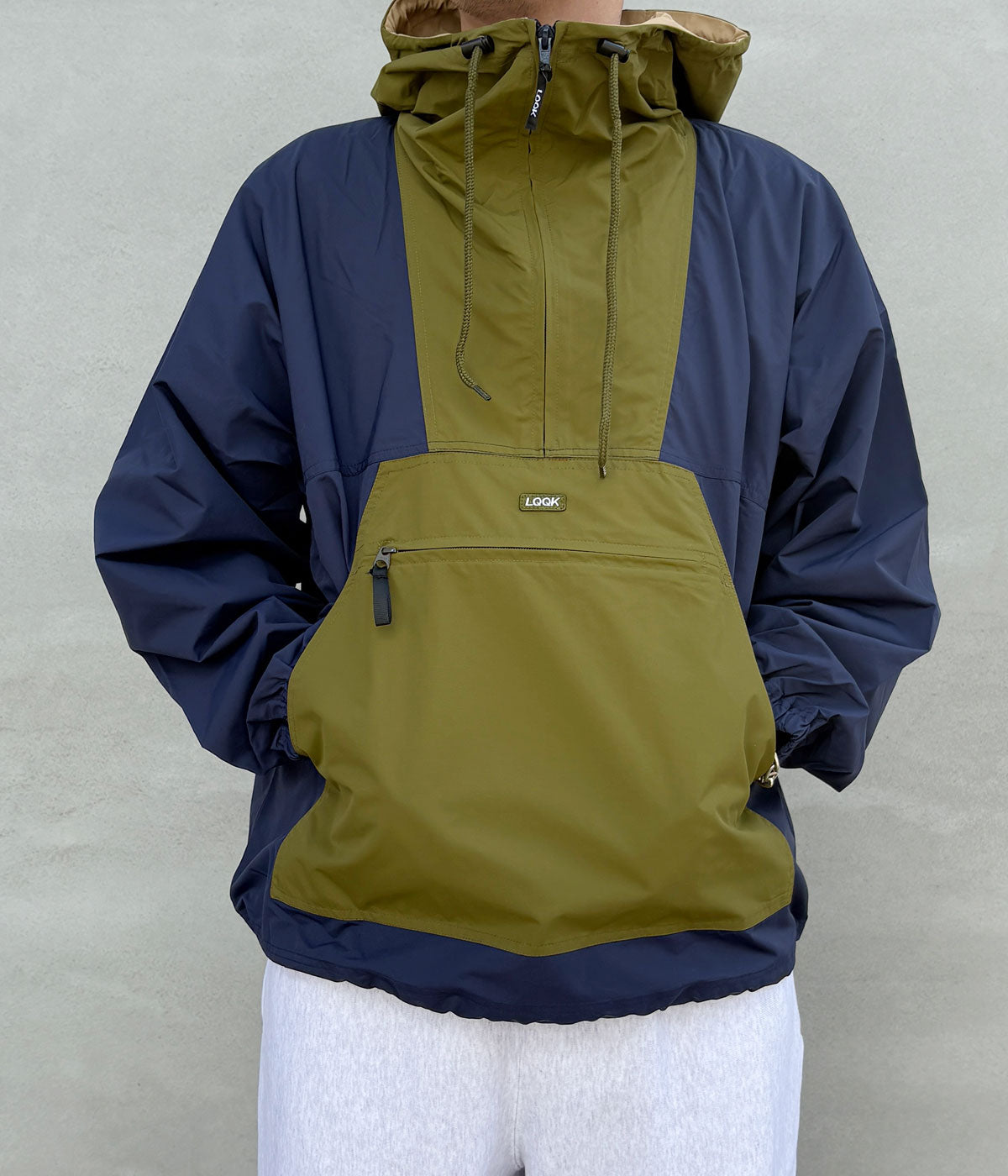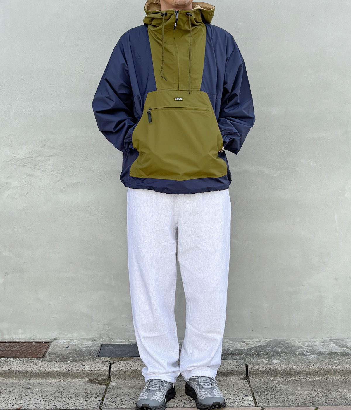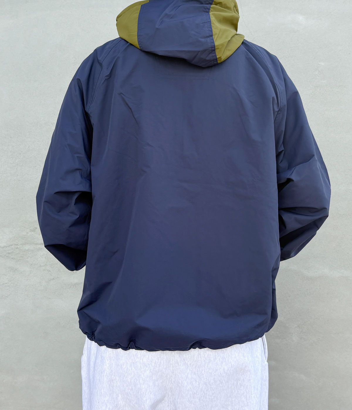 LQQK Studioから、NYLON TRACK JACKETが入荷しました。ナイロン素材を使用したハーフジップ仕立てのアノラックジャケット。変形ラグランスリーブのアクティブなパターン、裾周りとフードにドローコードを仕込み、袖口はゴム入りシャーリング仕様で冷気を完全シャットアウト。ハンドウォーマーとジップ付きのダブルポケットで収納力があります。フード裏のカラー切り替えがポイントのバイカラーデザイン。