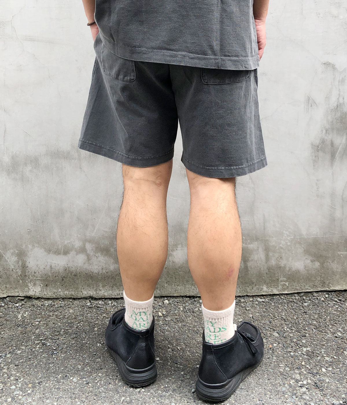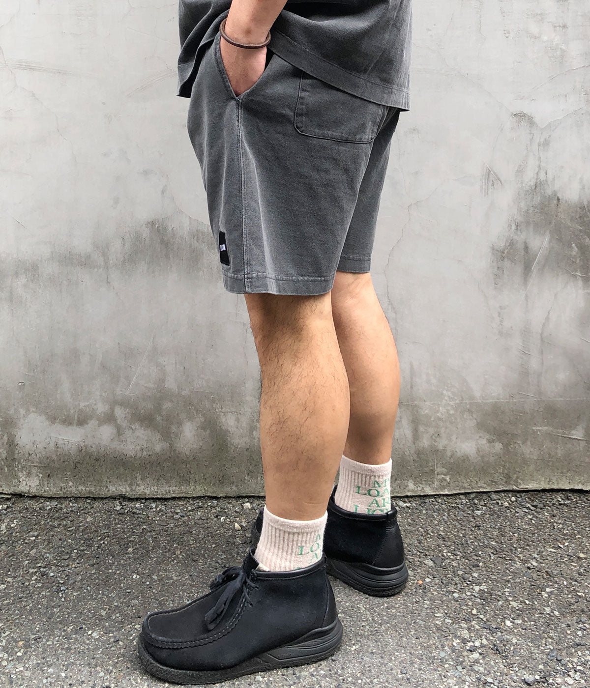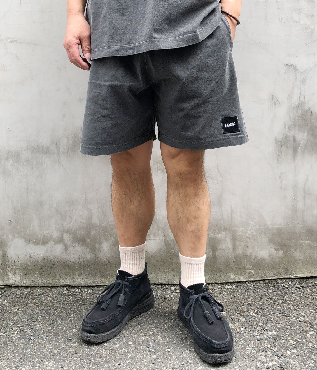LQQK Studioから、PIGMENT WASHED SHORTSが入荷しました。ピグメントウォッシュによるフェード感が特徴のスウェットショーツ。ゴム入りのイージー仕様、両サイドと背面2か所のポケット付きデザイン。左裾のボディと同色のLQQKロゴの刺繍がワンポイントのシンプルなデザイン。