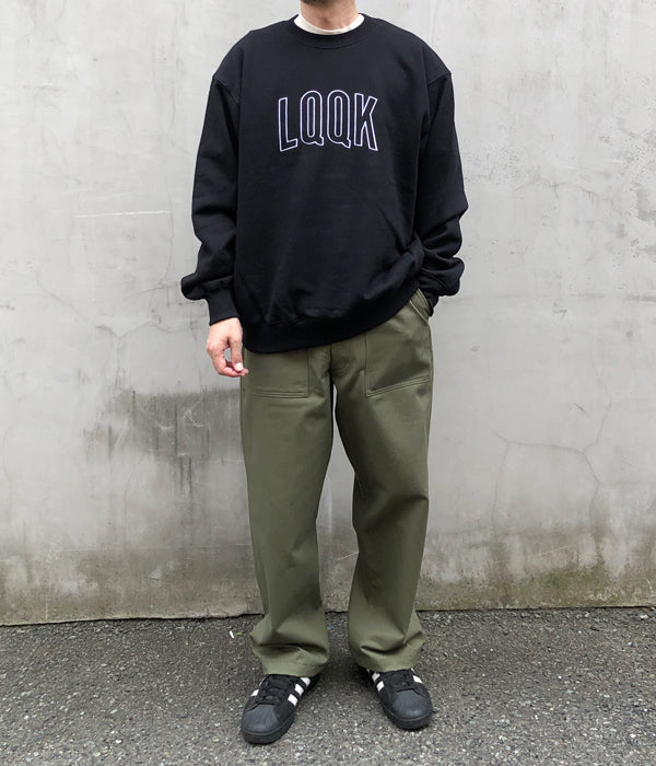LQQK Studioから、PINTUCK CREWNECKが入荷しました。コットン製のクルーネックスウェット。リブ素材で切り替えたエクスパンションガゼットを備え、フロントにLQQKのロゴのアウトラインを刺繍であしらったデザイン。