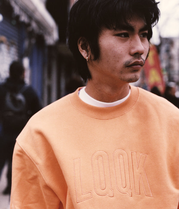LQQK Studioから、PINTUCK CREWNECKが入荷しました。コットン製のクルーネックスウェット。リブ素材で切り替えたエクスパンションガゼットを備え、フロントにLQQKのロゴのアウトラインを刺繍であしらったデザイン。