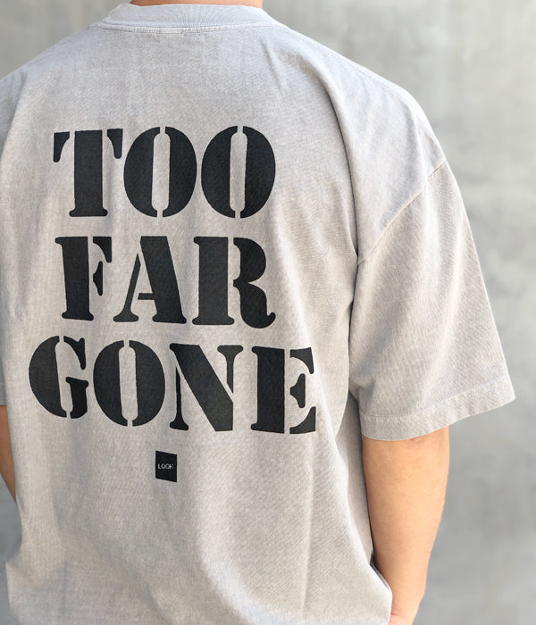 LQQK Studioから、TOO FAR GONE TEEが入荷しました。USA産のコットンボディを使用したSS Tシャツ。印象的なセメントカラーのボディを使用し、前後にプリントデザインを施したディティール。