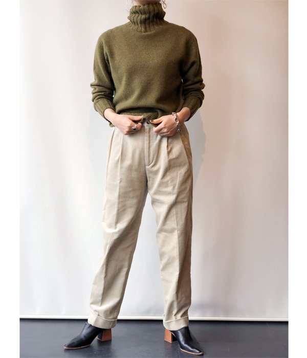 柔らかく肌触りにこだわったコーデュロイ素材を使用したトラウザーズ。2タック入りテーパードシルエット、上品な素材感で幅広いスタイルに使える1本。