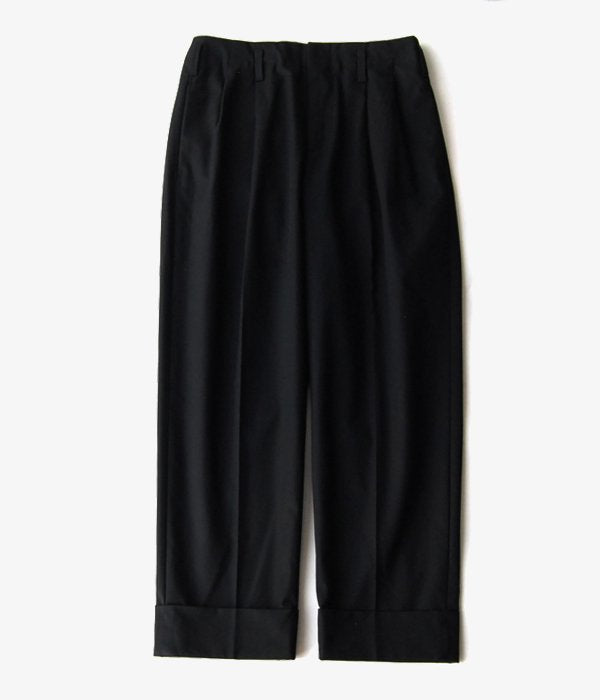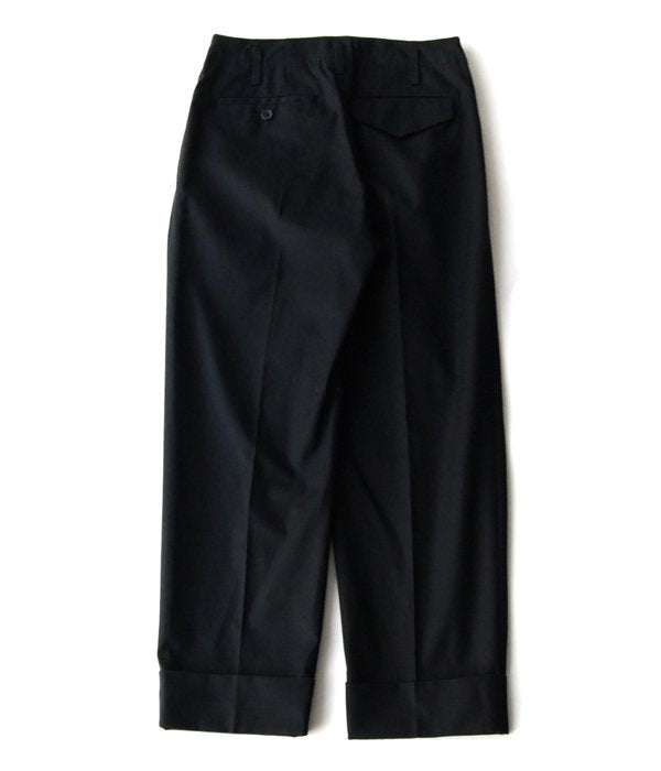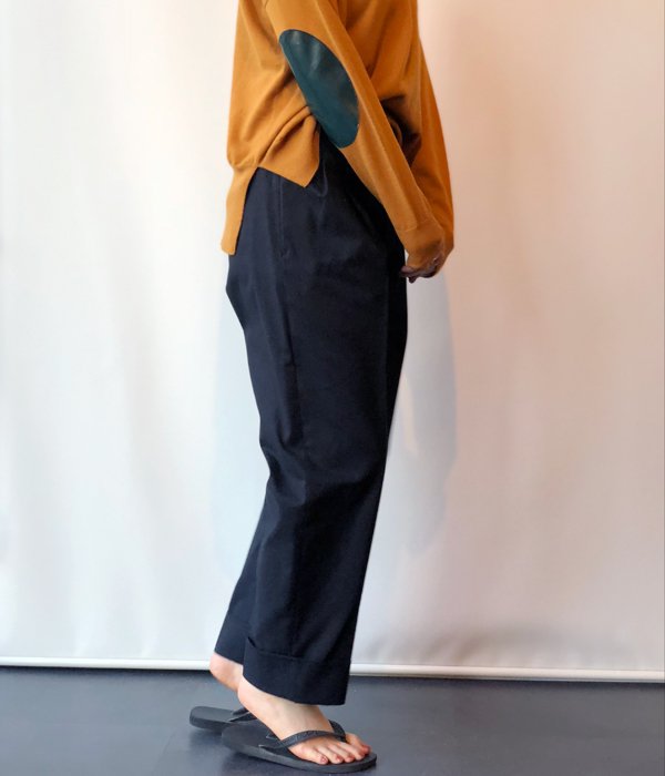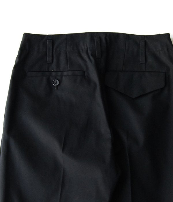 高密度で織られた張りのあるコットン素材のプリーツトラウザーズ。カジュアルながらもセンタープレス効果できちんとした印象に。様々なスタイルに幅広く合わせられる万能ボトムス。