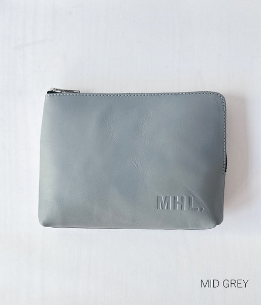 MHL.から、BASIC LEATHER POUCH Lが入荷しました。高級感のあるシボ感が特徴の牛革製のポーチ。L字にラウンドしたファスナーで出し入れもスムーズに。身の回り品はなんでもお任せなサイズ感の収納力の大きさが魅力。内側に仕切りを1か所備えた便利な作り。MHL.の型押しロゴが目印です。