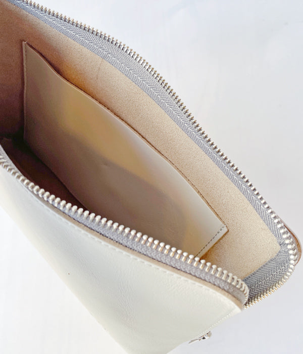 MHL./BASIC LEATHER POUCH L (BEIGE)