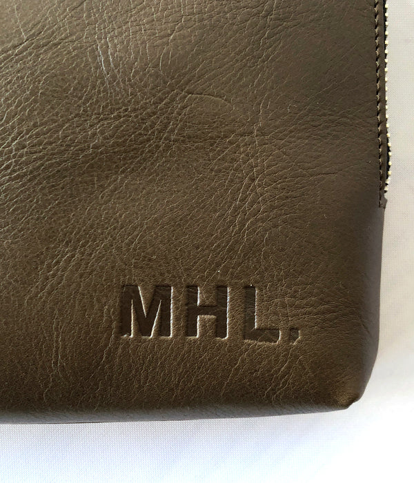 MHL.から、BASIC LEATHER POUCH (M)が入荷しました。牛革製の中型ポーチ。L字にラウンドしたファスナーで出し入れもスムーズに。スマートフォン等のガジェット類や、化粧品など幅広く収納可能な凡庸性の高い収納力とサイズ感。MHL.の型押しロゴが目印です。