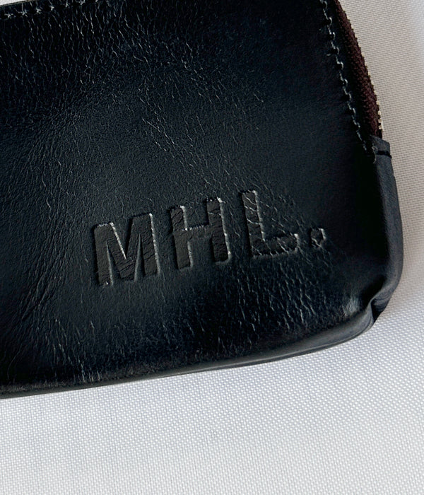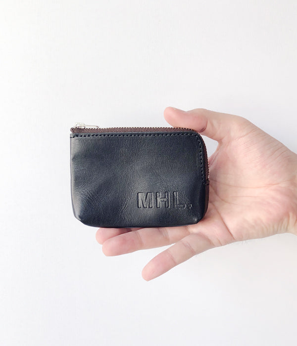 MHL.から、BASIC LEATHER POUCH Mが入荷しました。高級感のあるシボ感が特徴の牛革製の小型ポーチ。L字にラウンドしたファスナーで出し入れもスムーズに。Sサイズよりひとまわり大きい定番のサイズ感で、こまごました収納から、カード等の収納にもぴったりです。ミニマムな財布としても◎。MHL.の型押しロゴが目印です。