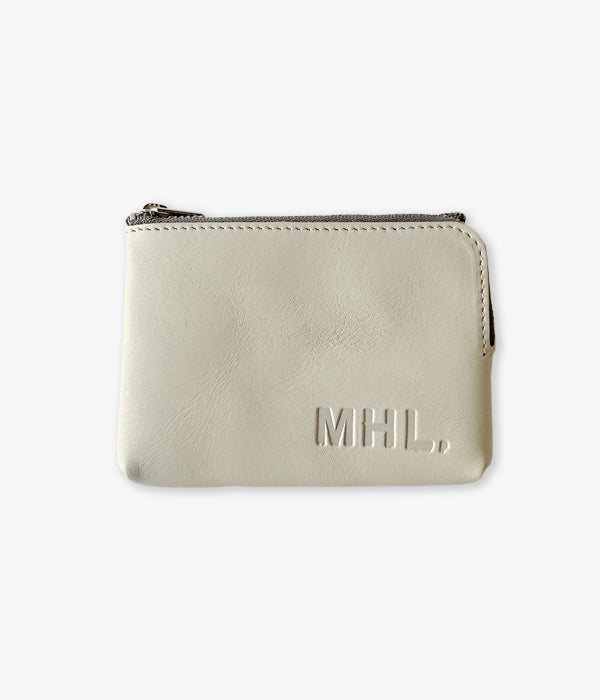 MHL.から、BASIC LEATHER W ZIP WALLETが入荷しました。独立した2ROOMをドッキングしたウォレット型の牛革製ポーチ。L字にラウンドしたファスナーで出し入れもスムーズに。キーリングを仕込んであり鍵なども収納可能。MHL.の型押しロゴが目印です。