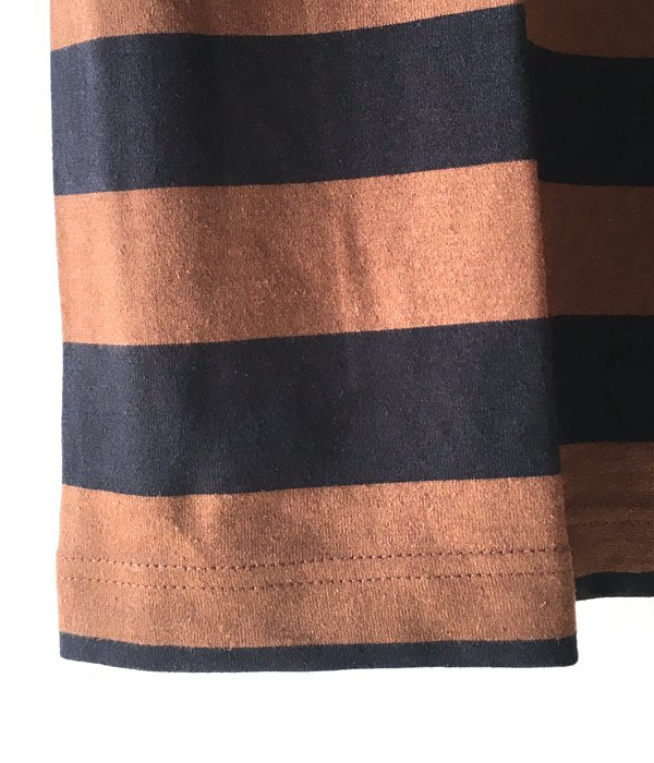MHL./COTTON HEMP WIDE STRIPE T-SHIRT (BROWN)