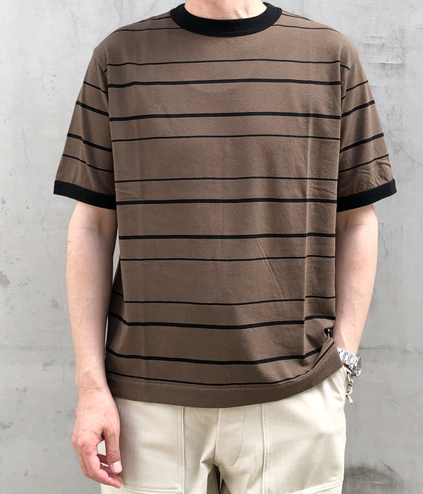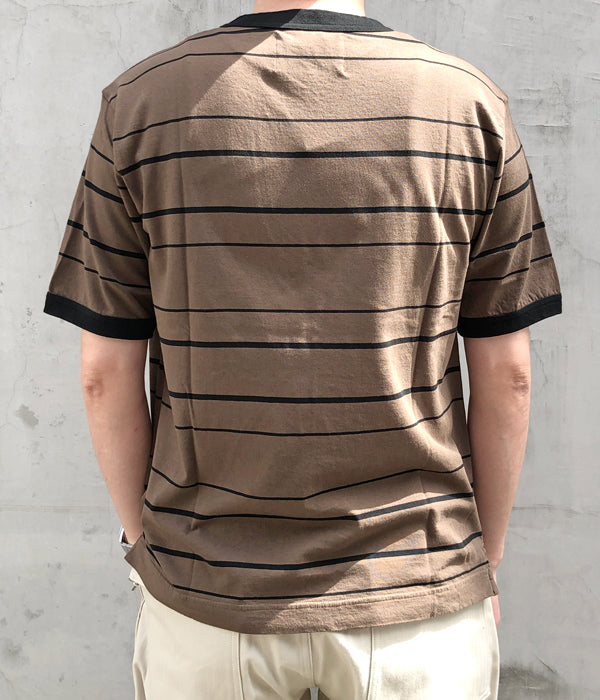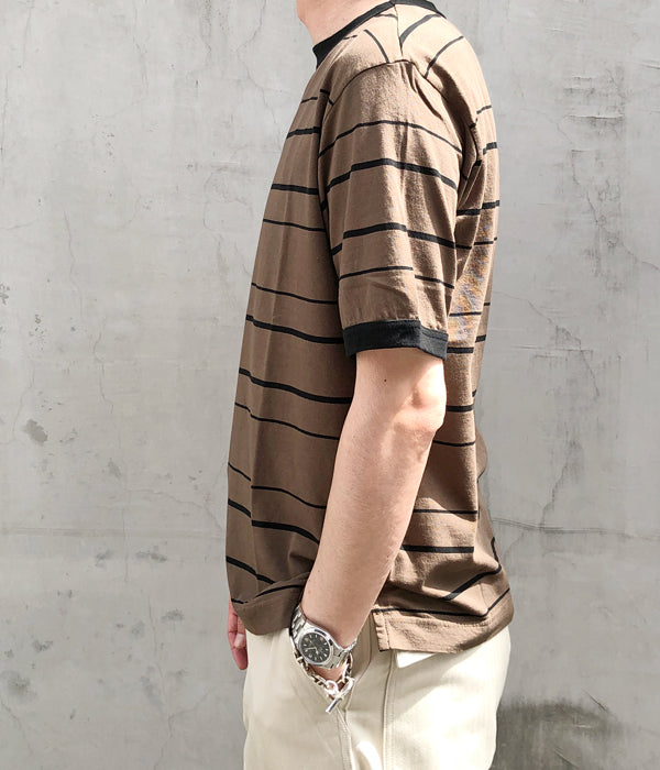 MHL./COTTON LINEN STRIPE JERSEY SS (BROWN)