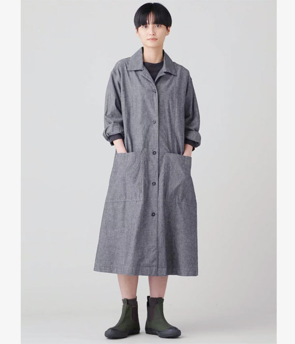 MHL.から、SOFT DENSE COTTON OPが入荷しました。高密度に織り上げたツイル素材を使用したプルオーバーワンピース。表面に薄らと起毛をかけたピーチ生地が温もりを与えてくれます。ゆとりのある身幅からナチュラルなパターンで広がるフレアシルエットが動きを生み出します。大きな2か所のパッチポケットが実用性を兼ねたポイントに。