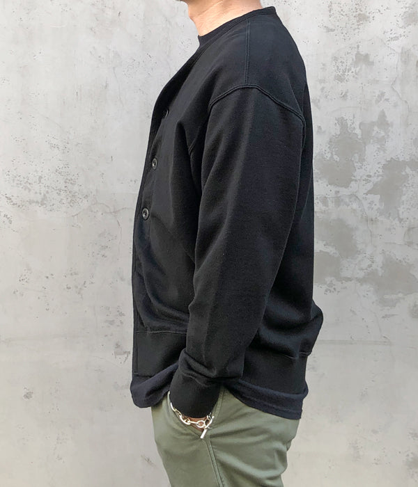 MHL./DRY COTTON LINEN LOOPBACK CARDIGAN (BLACK)