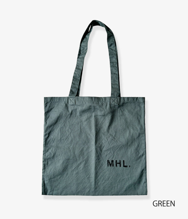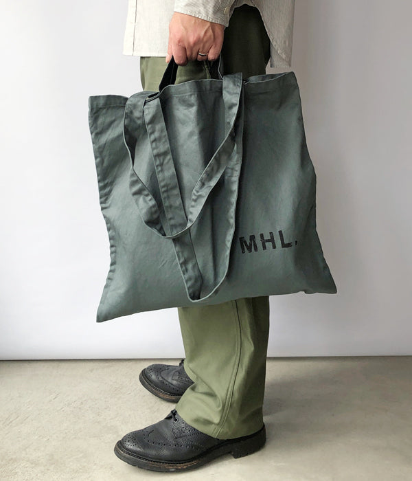 MHL.から、LIGHT COTTON DRILL TOTEが入荷しました。マチの無いシンプルで使い勝手の良いトートバック。肩掛け余裕なハンドルと、内側に隠したコールバックのような手持ち用ハンドルを設けた2WAY仕様。シーズンごとに展開される定番アイテム、MHL.LOGOがアクセントの3色展開。