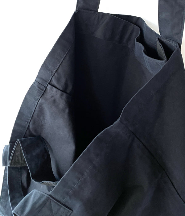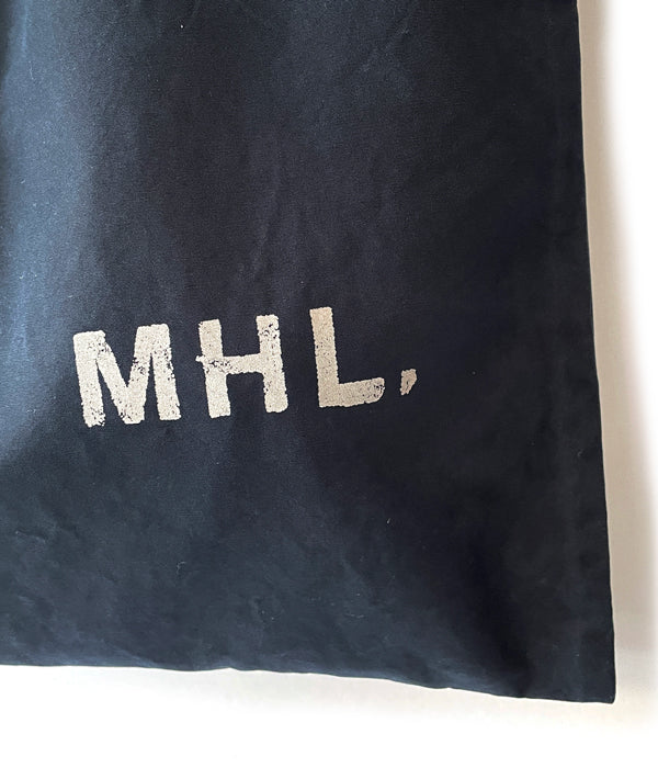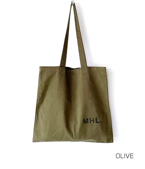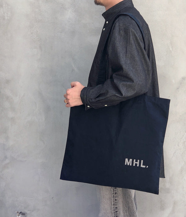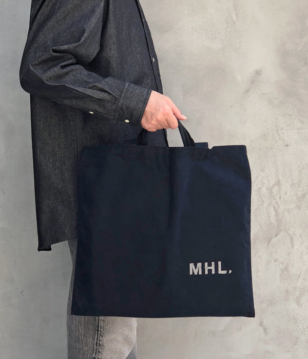 MHL.から、PROOFED CANVAS TOTEが入荷しました。ブランドロゴをワンポイントでデザインしたマチのないシンプルなトートバック。MHL.のトートの中でもかなり大きめの大容量サイズ。ゆったり余裕のある長さのトート掛けと、コールバッグのような短めのハンドルを内側に備え、短いハンドルでの手持ちにも対応可能な2WAYモデル。