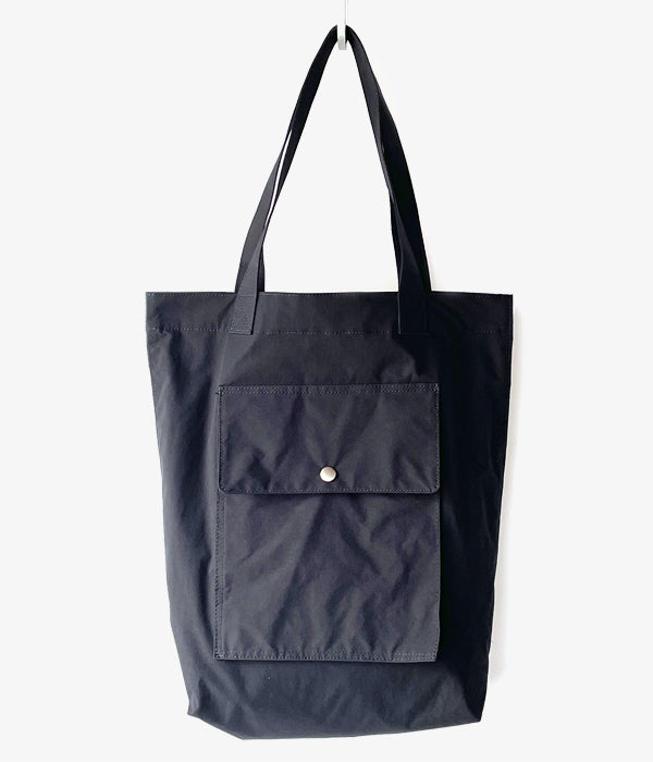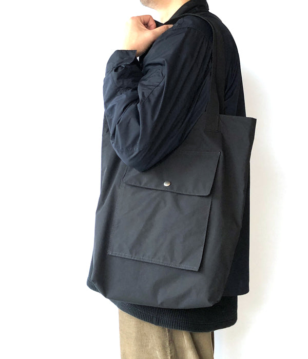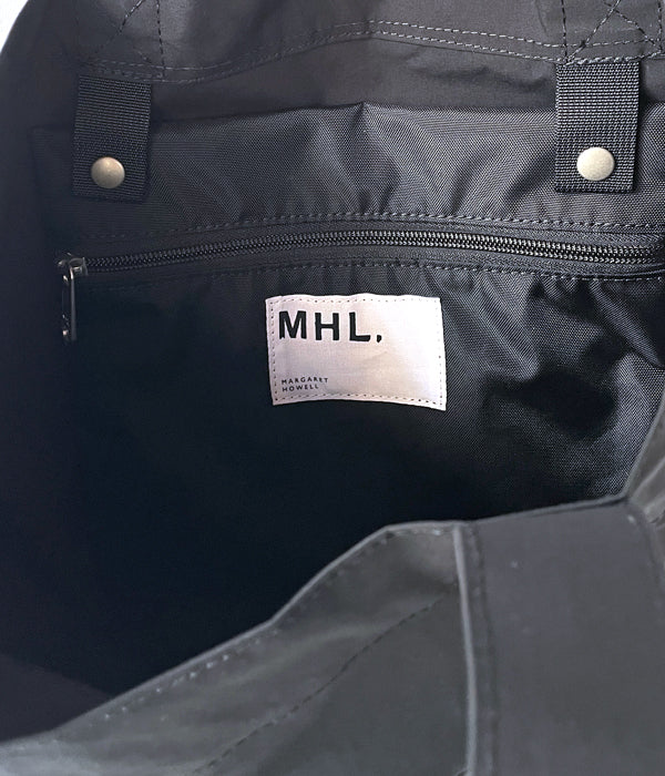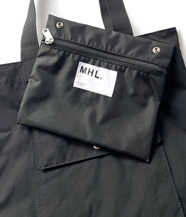 MHL.から、PROOFED HIGHCOUNT TWILL TOTEが入荷しました。特殊加工によるハリのある質感をもつポリエステル素材製のトートバッグ。フラップ付きの大きな外ポケット、内側には取り外し可能なポーチ型ポケットを備えます。マチが深くしっかりとした収納力。